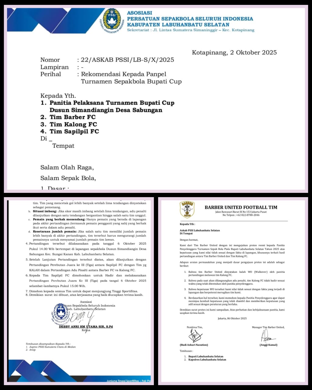 Kekisruhan dipicu oleh dugaan pelanggaran serius terhadap Surat Keputusan (SK) resmi Askab dengan nomor 22/ASKAB PSSI/LB-S/X/2025. Panitia pelaksana dinilai mengabaikan aturan yang sudah ditetapkan, sehingga merugikan salah satu peserta, Baber United, yang akhirnya gagal melaju ke babak final.