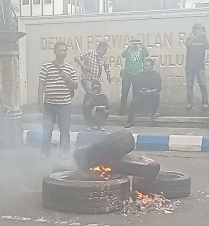 Aksi sempat memanas ketika sebagian demonstran membakar ban bekas di tengah jalan dan terjadi dorong-dorongan dengan aparat keamanan saat massa mencoba maju lebih dekat ke gedung DPRD. Meski begitu, situasi berhasil dikendalikan sehingga aksi tetap berlangsung tertib.