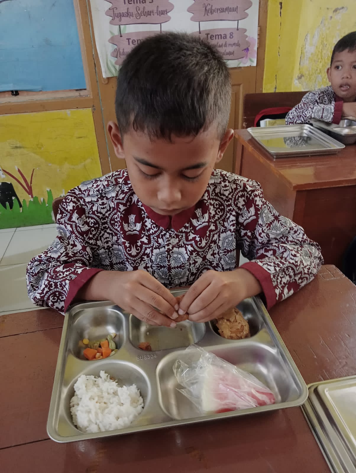 “Saya merasa senang karena bisa makan gratis. Makanannya enak, terima kasih kepada pemerintah yang sudah memberikan kami MBG,” ungkap salah satu peserta didik.