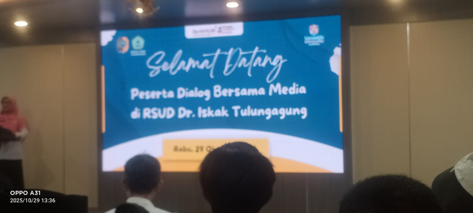 Rumah Sakit Umum Daerah (RSUD dr. Iskak Tulungagung) menggelar dialog bersama insan media sebagai upaya memperkuat koordinasi dan sinergi dalam penyebaran informasi publik. Kegiatan tersebut berlangsung di Auditorium Instalasi Diagnostik dan Intervensi RSUD dr. Iskak, Rabu (29/10/2025) pukul 13.00–14.30 WIB.