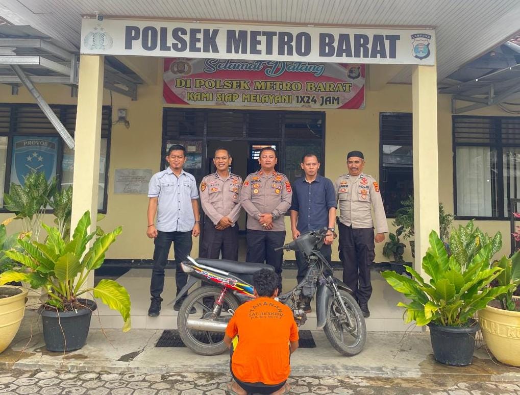 Jppos.id || Metro Lampung — Kepolisian Sektor (Polsek) Metro Barat berhasil mengungkap kasus pencurian dengan pemberatan (curat) sepeda motor yang terjadi pada hari Kamis, 02 Oktober 2025, di Jalan Laskar I RT.006 RW.002, Kelurahan Mulyosari, Kecamatan Metro Barat, Kota Metro.