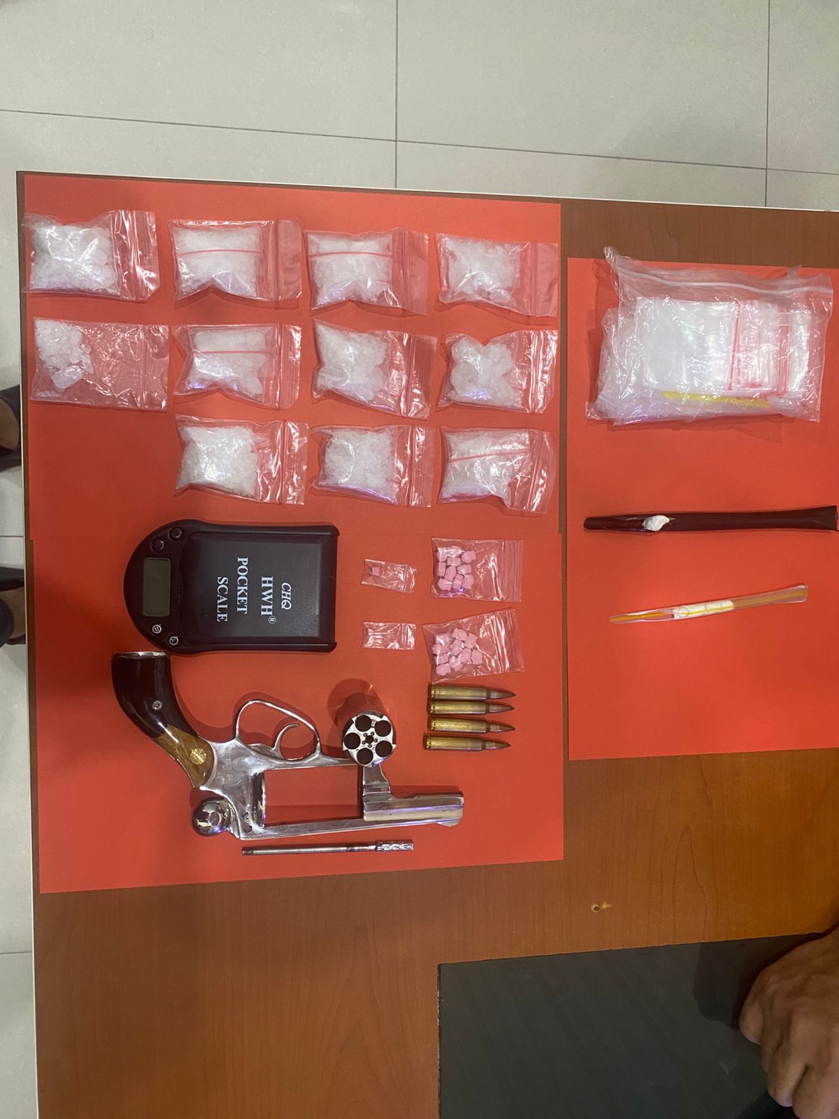 – J (29), warga Kabupaten Ogan Komering Ilir, ditemukan membawa tas berisi 11 (Sebelas) Bungkus Plastic klip besar yang diduga berisi Narkotika jenis Sabu dengan berat bruto 34.079 gram, 2 (dua) bungkus plastic klip berisikan narkotika jenis inek sebanyak 20 butir dengan berat bruto 2.527 gram, 1 pucuk senpi rakitan jenis revolver berikut 4 butir peluru kal 5.56 mm