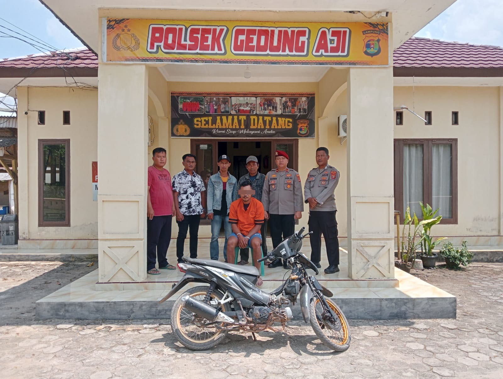 Setelah menerima laporan, personel Polsek Gedung Aji segera melakukan serangkaian penyelidikan. Berdasarkan informasi dari masyarakat, motor korban terlihat dibawa oleh seorang pria berinisial S (35), yang juga merupakan warga Kampung Sumber Sari.