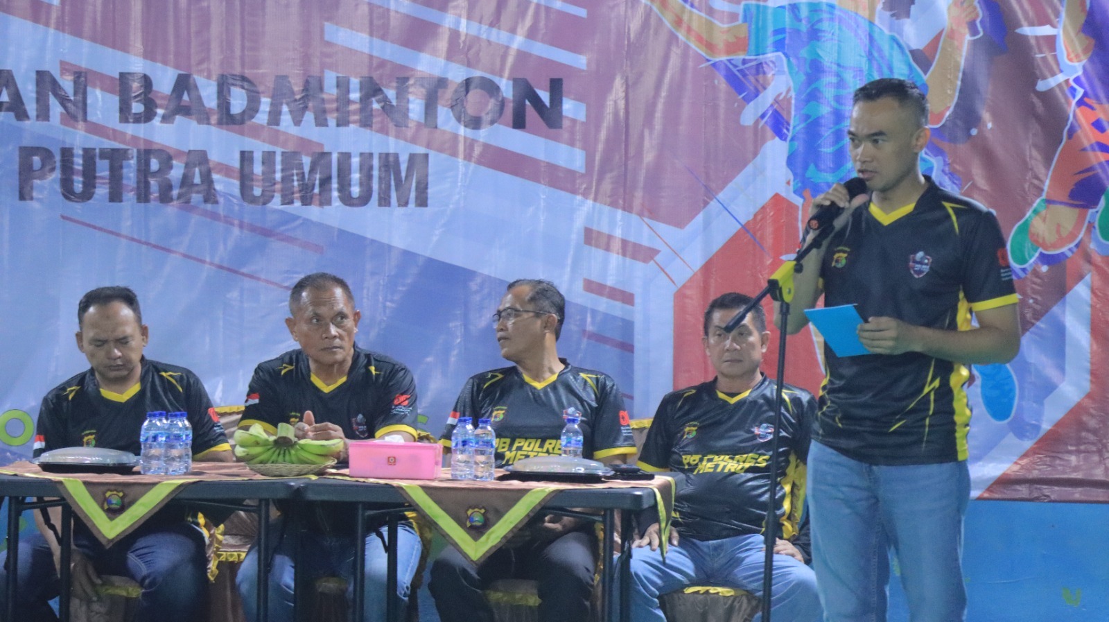 Jppos.id || Metro Lampung – Dalam rangka menyemarakkan Hari Ulang Tahun (HUT) Kemerdekaan Republik Indonesia ke-80, Kepolisian Resor (Polres) Metro menggelar Turnamen Badminton Kapolres Cup 2025. Kegiatan ini resmi dibuka langsung oleh Kapolres Metro, AKBP Hangga Utama Darmawan, S.I.K., pada Senin malam (25/8/2025) pukul 20.00 WIB di GOR Jurai Siwo, Kota Metro.