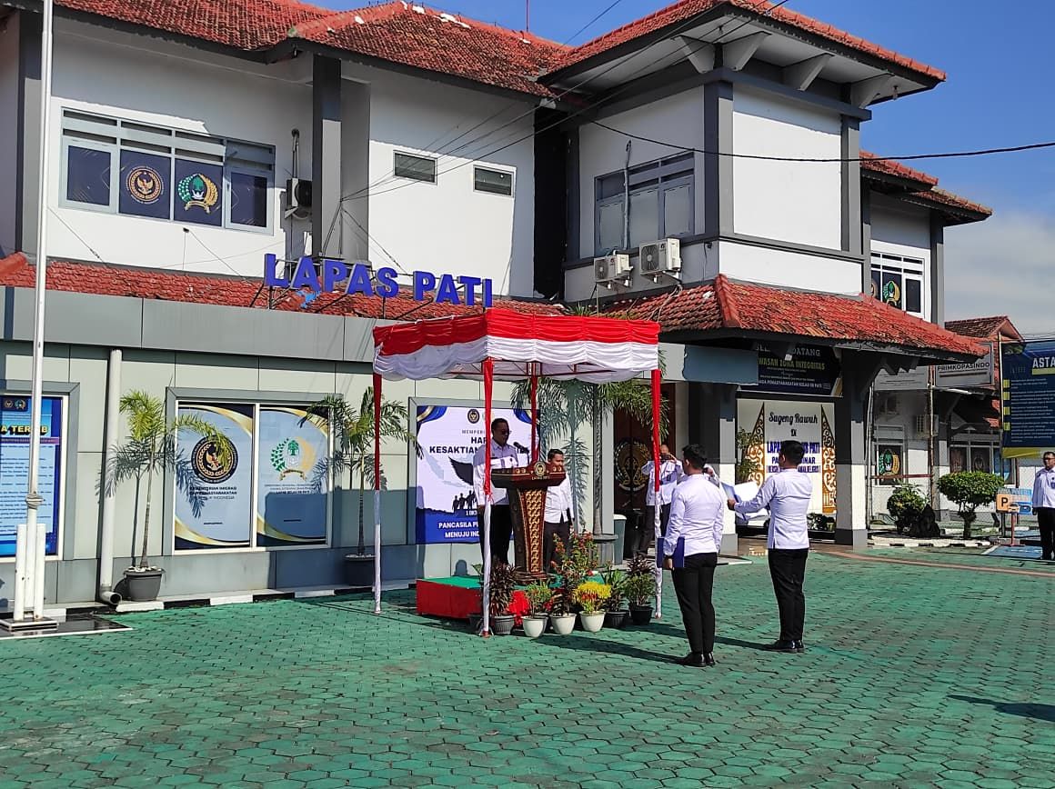 JPPOS.ID || PATI – Dalam rangka memperingati Hari Kesaktian Pancasila yang jatuh pada tanggal 1 Oktober 2025, Lembaga Pemasyarakatan Kelas IIB Pati menggelar upacara peringatan yang dilangsungkan dengan penuh khidmat di halaman depan kantor, Rabu pagi (1/10/2025) .Kegiatan ini dirangkaikan dengan penyerahan Surat Keputusan (SK) Kenaikan Pangkat kepada enam orang pegawai.