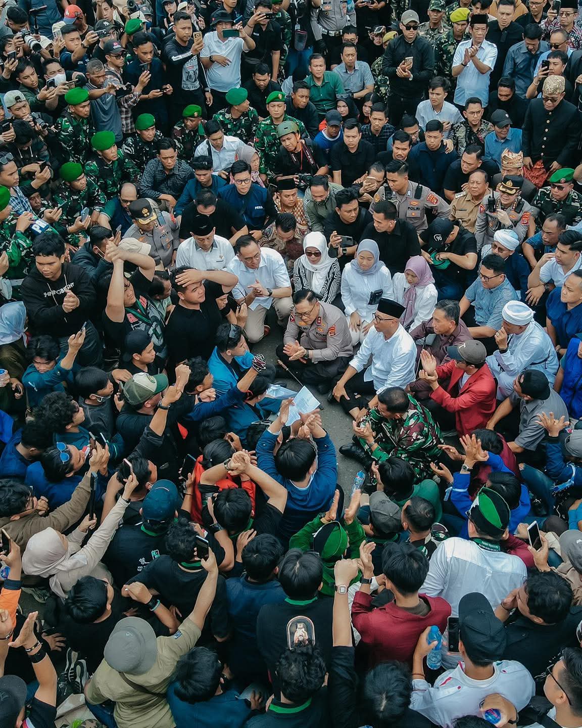 Suasana semula dipenuhi lantunan orasi, namun berubah menjadi ruang dialog terbuka ketika Gubernur Lampung Rahmat Mirzani Djausal, Ketua DPRD Ahmad Giri Akbar, Kapolda Lampung Irjen Pol Helmy Santika, serta Pangdam XXI/Radin Inten II Mayjen Kristomei Sianturi turun langsung menemui massa. Mereka duduk bersila di halaman gedung, sejajar dengan mahasiswa, mendengarkan setiap tuntutan yang dilontarkan dari mimbar aksi.