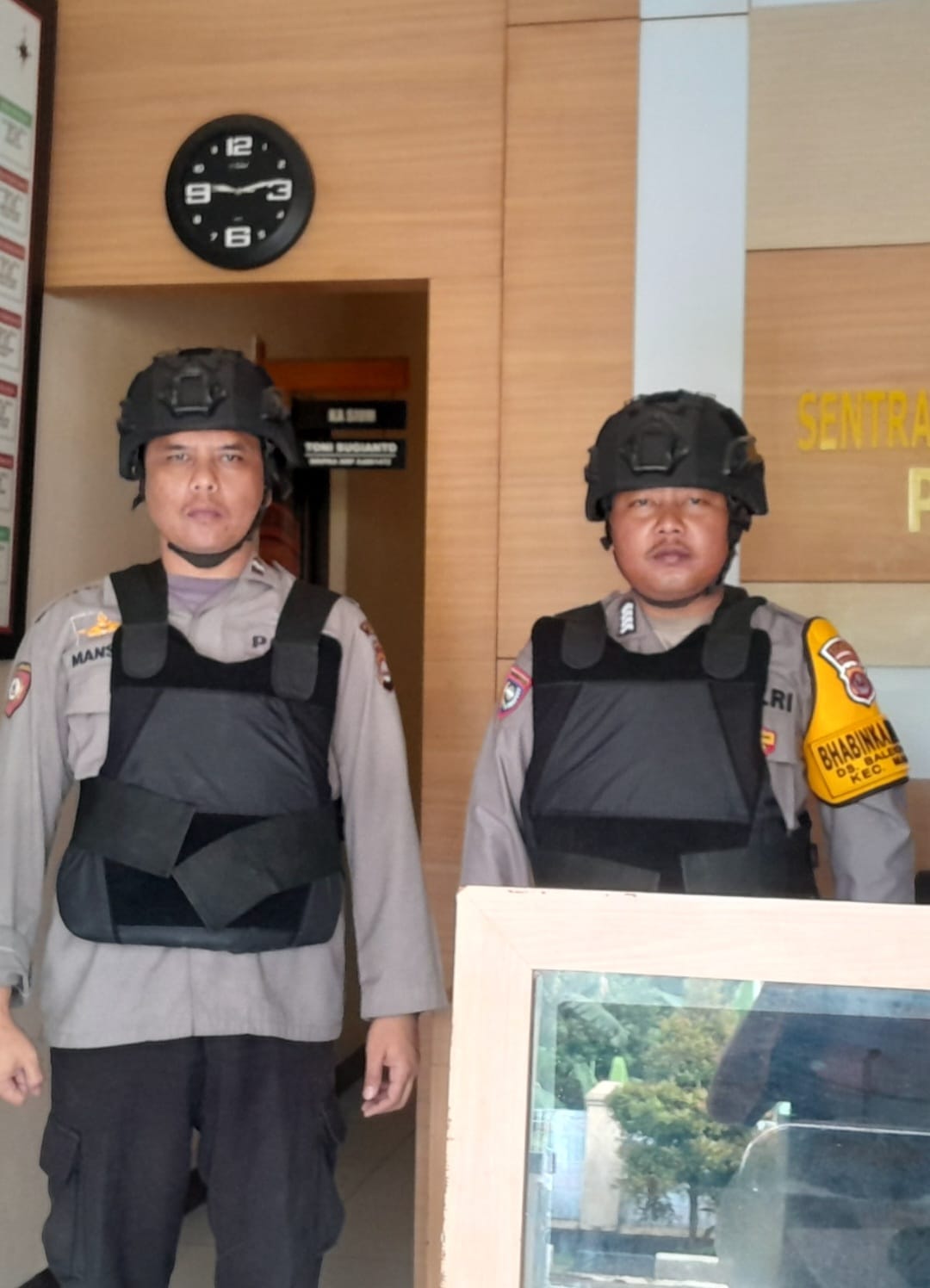 “Anggota piket jaga Polsek Mancak melaksanakan Sispam Mako dilengkapi dengan bodyvest, helm kevlar, dan senjata api salah satu upaya peningkatan kemanan mako guna mencegah hal-hal yang tidak dapat di duga selama pelayan berlangsung.”