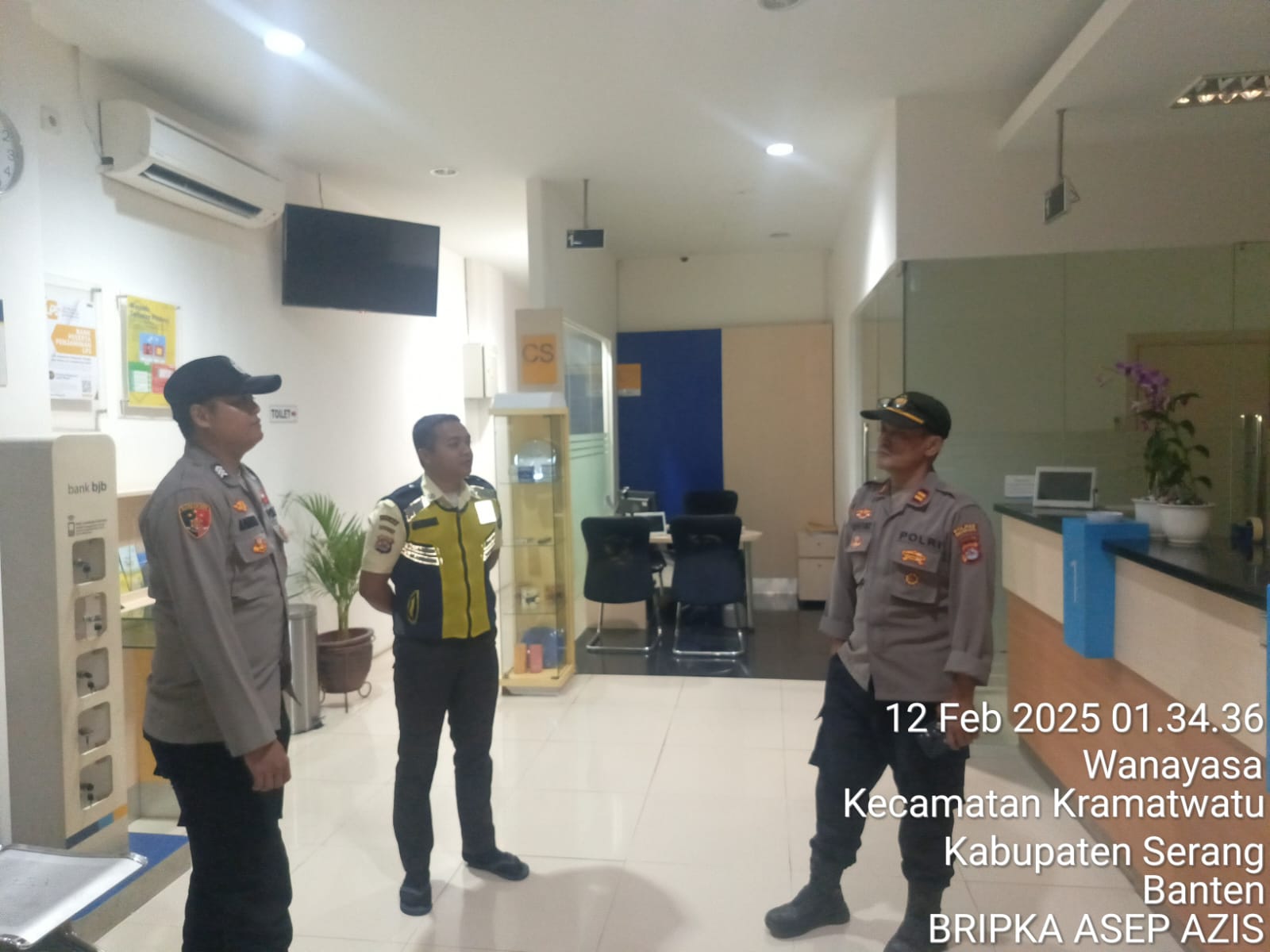 JPPOS.ID || POLRESTA SERKOT_Anggota piket Polsek Kramatwatu Polresta Serkot Polda Banten Iptu Ruhiyat beserta Bripka Asep dan Brigpol Danang melaksanakan giat patroli ke Bank BJB di desa Wanayasa kec.kramatwatu,Rabu (12/2/2025).