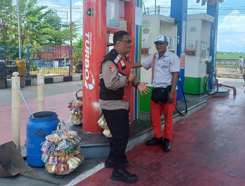 Anggota Polsek Batujaya melaksanakan Patroli Prekat di SPBU Batujaya pada siang hari
