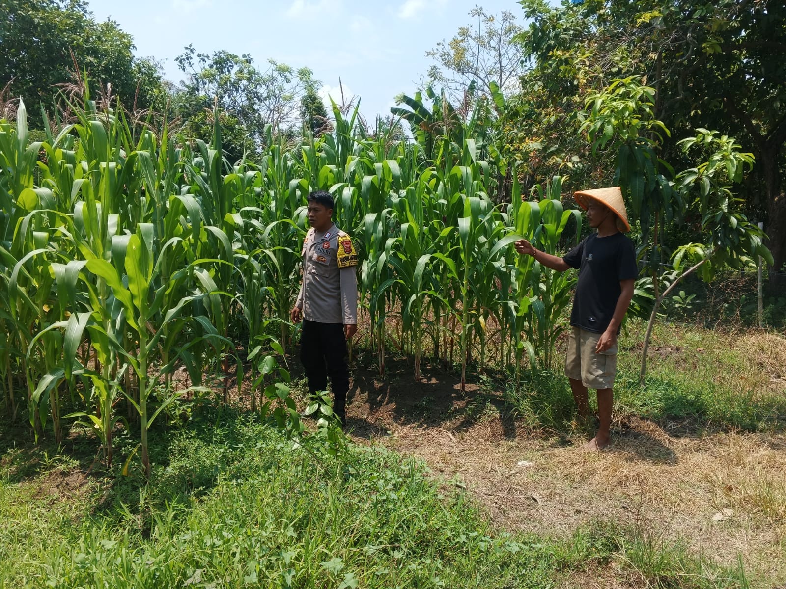 JPPOS.ID || Polres Karawang – Polsek Batujaya Polres Karawang Polda Jabar, Anggota Polsek Batujaya Polres Karawang Polda Jabar Bripka Sigit Shinto Wibowo dan Unsur Masyarakat dan Pemerintah Desa Kutaampel Kecamatan Batujaya melaksanakan Monitoring dan Pengecekan Pasca Penanaman Jagung. Selasa (21/10/2025)
