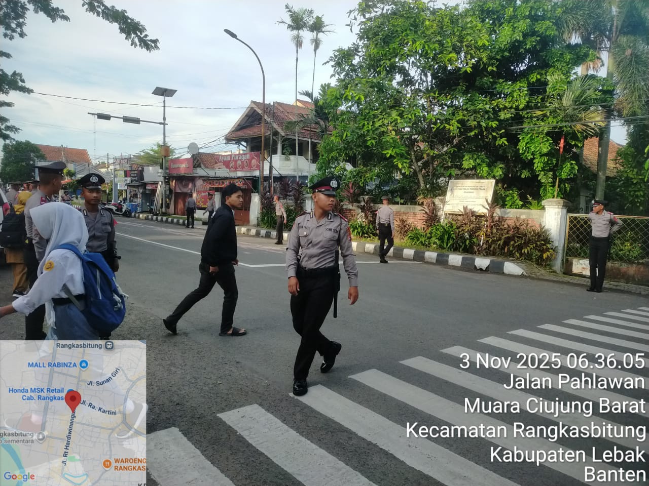 Yang berada di Jalan RT.Hardiwinangun, memastikan arus lalulintas berjalan lancar,agar para siswa serta warga masyarakat yang akan melintas merasa nyaman dan lancar.Senin (03/11/2025)