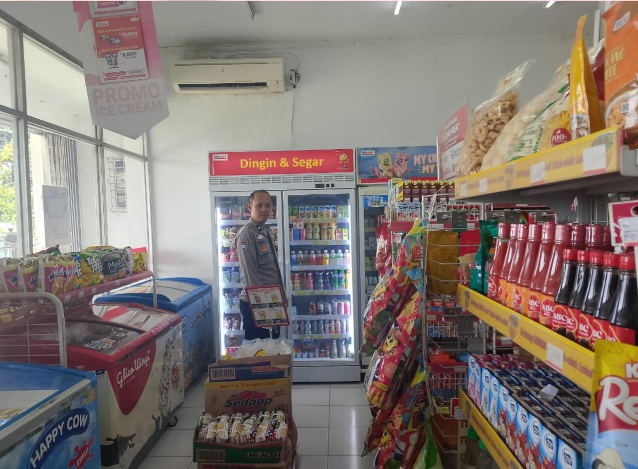 Pada pelaksanaan kegiatan Patroli Prekat, Anggota Polsek Tirtajaya Kontrol situasi keamanan dan Kondusifitas di Minimarket Desa Sabajaya kecamatan Tirtajaya Kabupaten Karawang.