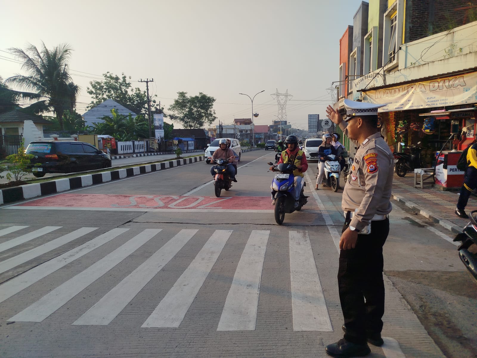JPPOS.ID || POLRESTA SERKOT | Guna menciptakan situasi kamseltibcar lantas maka dari itu jajaran lalu lintas Polsek Cipocok Jaya melaksanakan tugas pengaturan arus lalu lintas di Simpang tiga Cipocok Jaya, Senin (28/4/25).