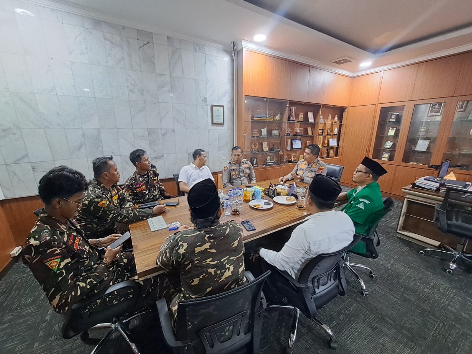 Silaturahmi ini dihadiri oleh Kabagops Polres Cilegon AKP Choirul Anam, Kanit 3 Satintelkam Polres Cilegon IPDA Munif, Ketua GP Ansor Kota Cilegon Muachir S.Sy, Sekjen GP Ansor Apriyanto, serta perwakilan Banser Kota Cilegon. Suasana dialog berlangsung akrab dan penuh semangat kebersamaan.