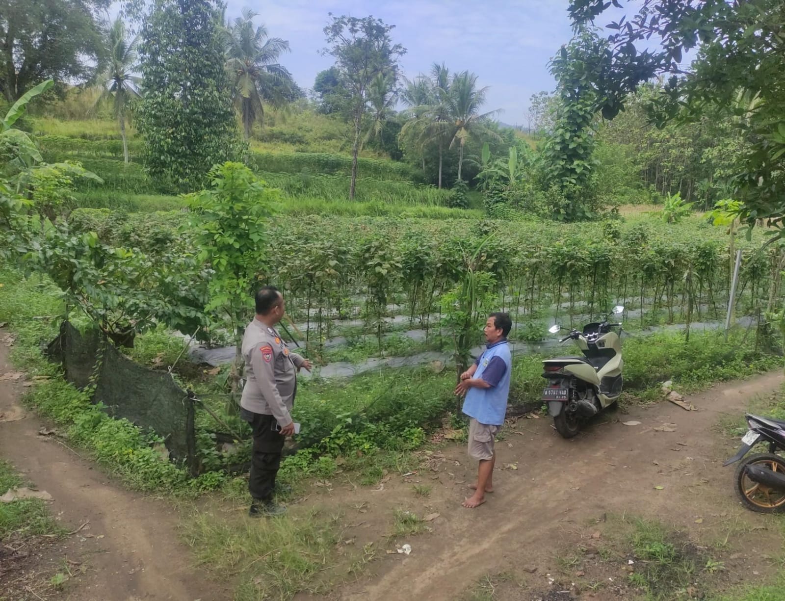 JPPOS.ID || Dalam upaya mendukung program ketahanan pangan nasional, Bhabinkamtibmas Kelurahan Tamanbaru Polsek Cibeber Polres Cilegon Polda Banten menyambangi salah satu warga di kebun Yayasan Al Insan Link Krotek kel. Kalitimbang kec. Cibeber,