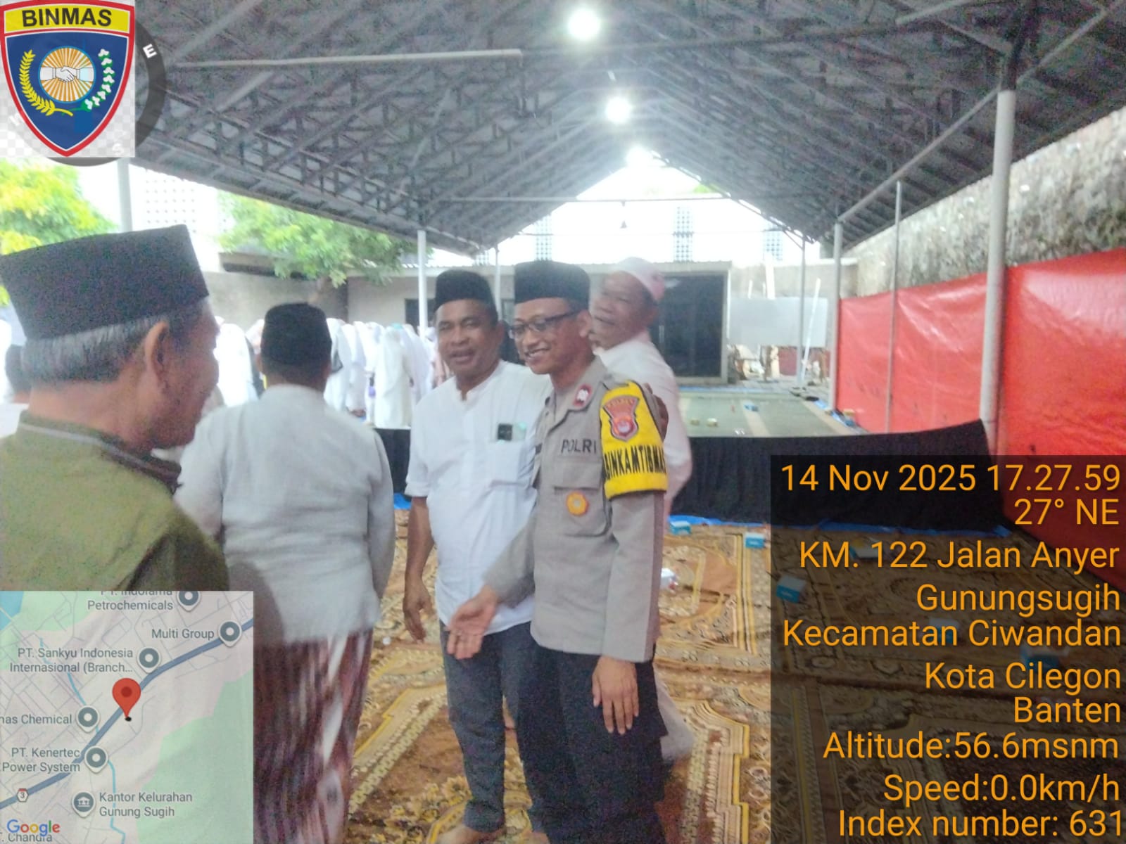 JPPOS.ID || Bhabinkamtibmas Polsek Ciwandan Polres Cilegon Polda Banten menghadiri kegiatan Doa Bersama dan Dilanjutkan Pengajian Rutin dilingkungan Kelurahan Gunung Sugih Kecamatan Ciwandan Kota Cilegon, Jum’at (14/11/2025).