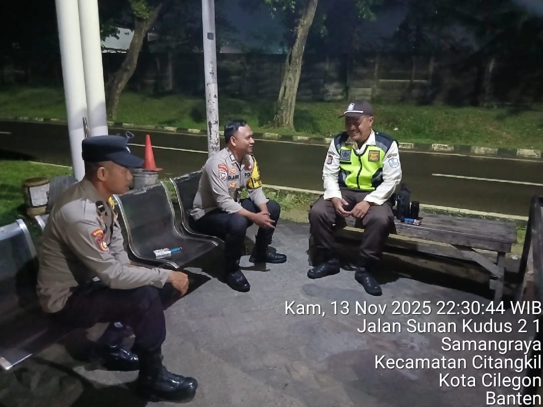 JPPOS.ID || Bhabinkamtibmas Polsek Ciwandan Polres Cilegon Polda Banten Laksanakan Silaturahmi Polri serta Patroli Dialogis Pembinaan Satpam/Security dan Guna Memelihara Harkamtibmas, Sebagai Petugas satuan pengamanan atau security merupakan bagian dari mitra dan kepanjang tanganan tugas Polri yang membantu melaksanakan pengamanan, Sabtu (15/11/2025).