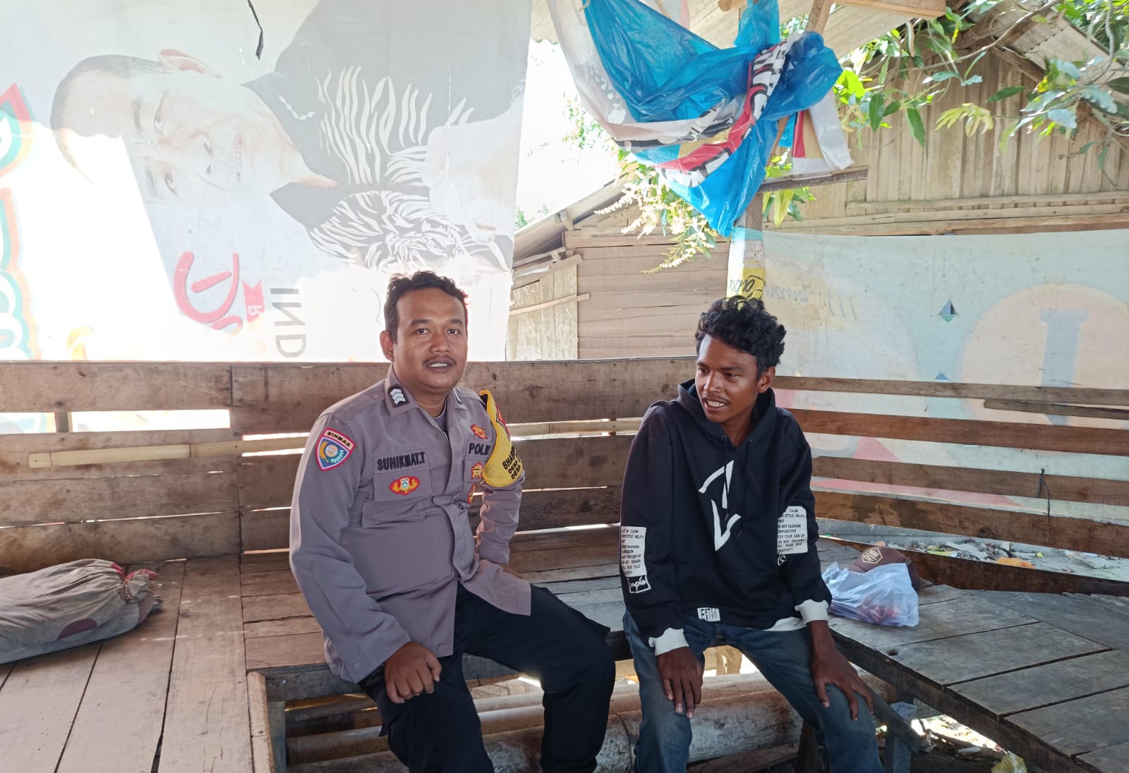 “selain itu anggota Bhabinkamtibmas Polsek Kramatwatu Polresta Serkot Polda Banten memberitahu agar semua elemen masyarakat bisa menciptakan suasana yang aman dan nyaman Ucap Brigpol Suhikmat