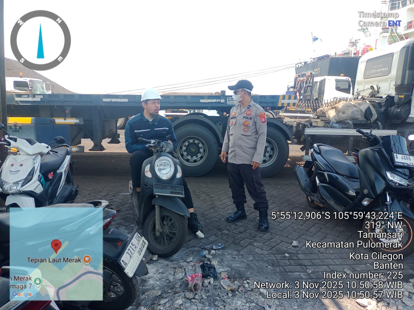 Kapolres Cilegon Polda Banten AKBP Martua Raja Taripar Laut Silitonga Melalui Kapolsek Kskp Banten Polres Cilegon Polda Banten AKP Fredo Leonard Mengatakan Personil Polsek Kskp Banten Rutin menyambangi Karyawan dan memberikan himbauan agar para pekerja mematuhi aturan K3 saat bekerja di lingkungan Kawasan Pelabuhan.