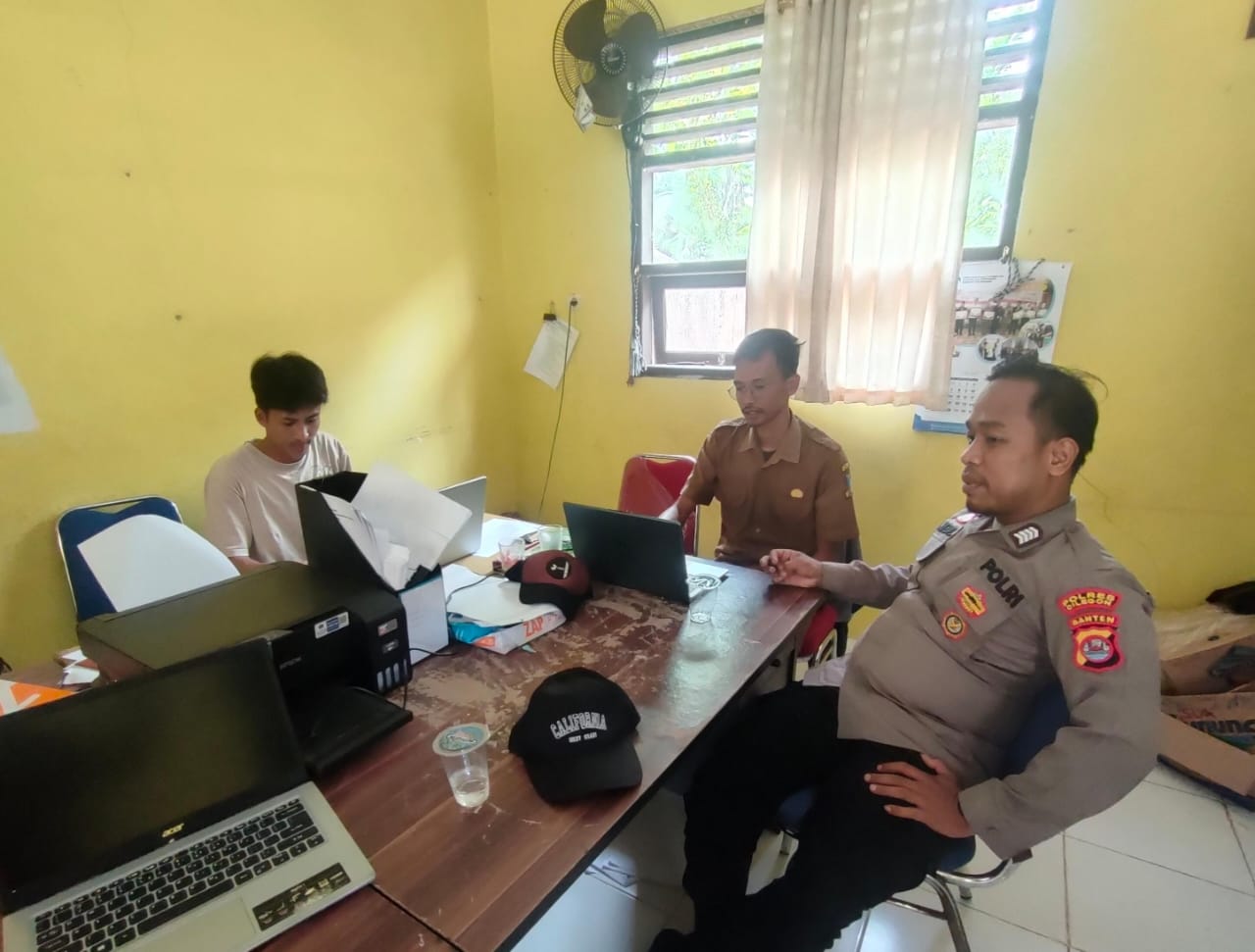 Bhabinkamtibmas Polsek Mancak Polres Cilegon melaksanakan giat sambang dan silaturahmi kantor desa dalam Rangka pelaksanaan giat program *Polres Cilegon Tranding