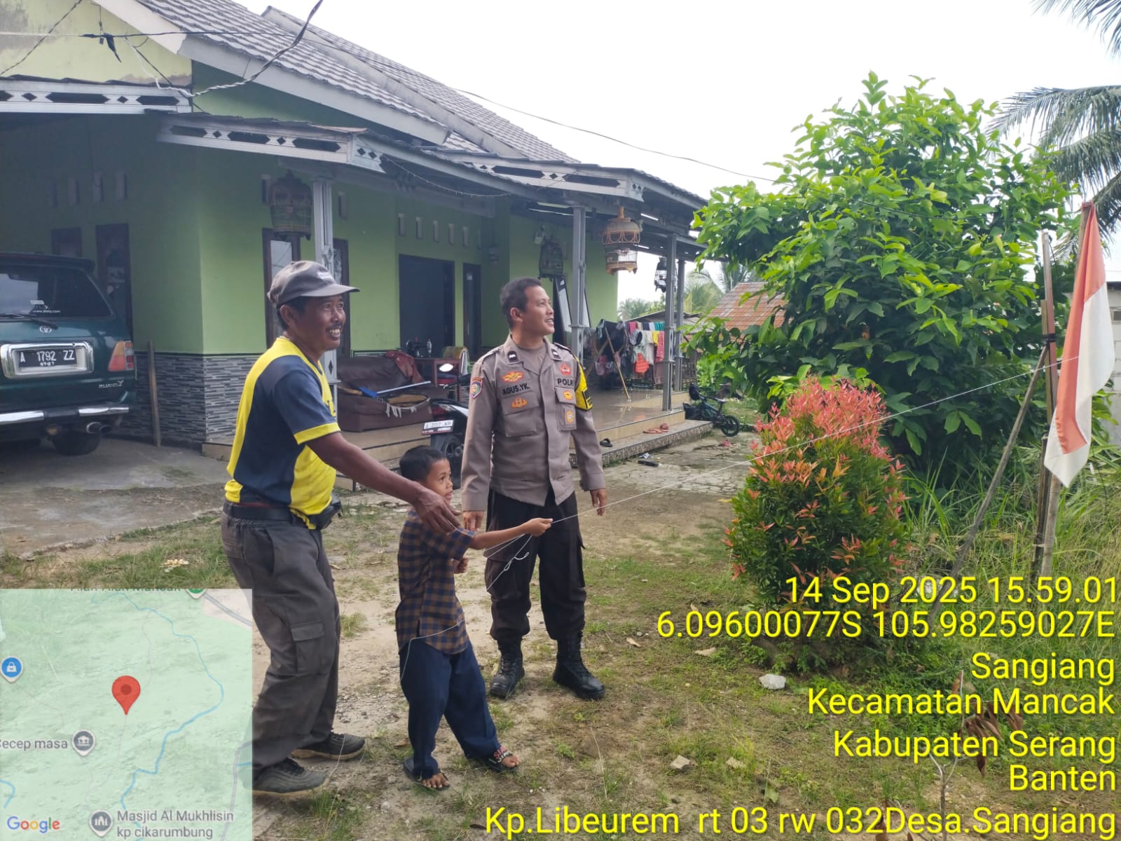 JPPOS.ID || Mancak – Sebagai Pengemban Fungsi Harkamtibmas, Bhabinkamtibmas AIPDA AGUS YK Polsek Mancak Polres Cilegon Laksanakan Sambang dan Silaturahmi kepada Tokoh Masyarakat Kp. Libeurem Ds Sangiang Kec. Mancak Kab. Serang. Minggu (14/09/2025).