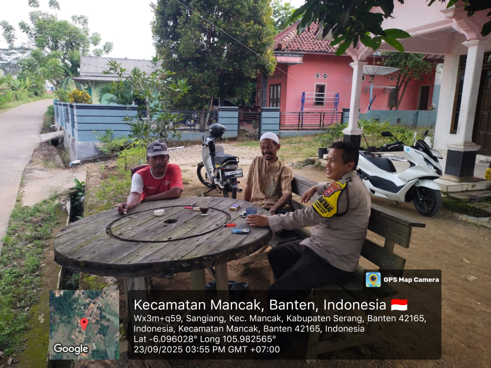 JPPOS.ID || Sebagai Pengemban Fungsi Harkamtibmas, Bhabinkamtibmas AIPDA IPUNG YK Polsek Mancak Polres Cilegon Laksanakan Sambang dan Silaturahmi kepada Tokoh Masyarakat Ds Sangiang Kec. Mancak Kab. Serang. Selasa (23/09/2025).