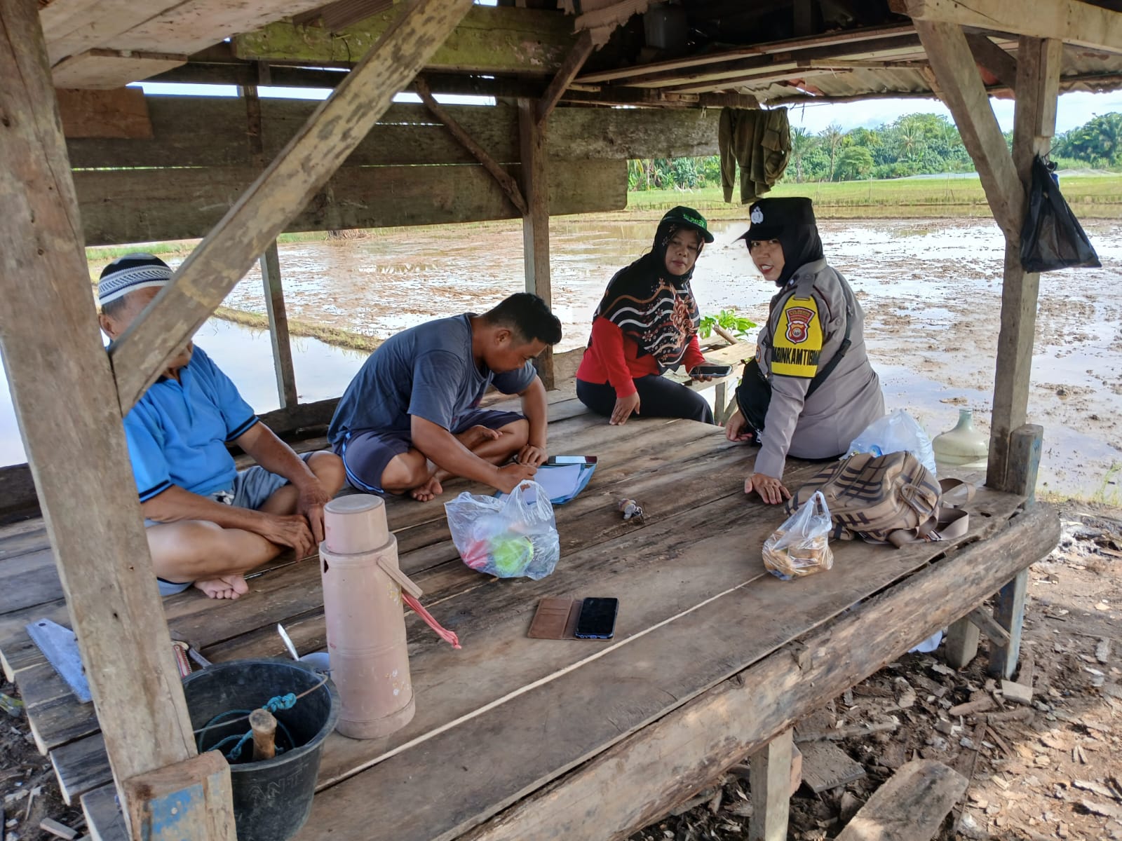 Aipda Rahmi Darmitawati turut mendampingi petugas Penyuluh Pertanian Lapangan (PPL), Ibu Aminah dari Balai Penyuluhan Pertanian (BPP), dalam proses pendataan penyaluran bibit padi dan pupuk kepada kelompok tani Bajak Jaya. Langkah ini bertujuan memastikan penyaluran bantuan tepat sasaran dan mendukung produktivitas petani setempat.