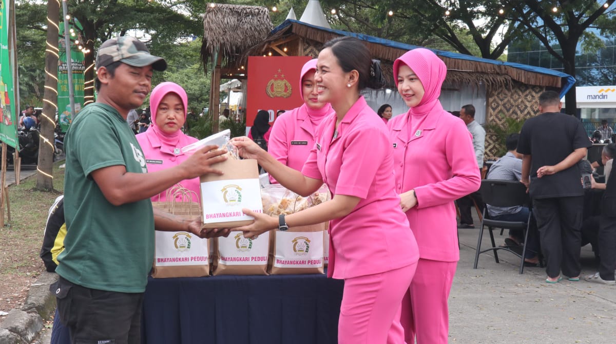 Kegiatan bakti sosial Pengurus Bhayangkari ini berlangsung di gerbang Kawasan Industri Modern Cikande Jalan Raya Serang Jakarta, Kabupaten Serang, Sabtu (15/3/2025) sore.
