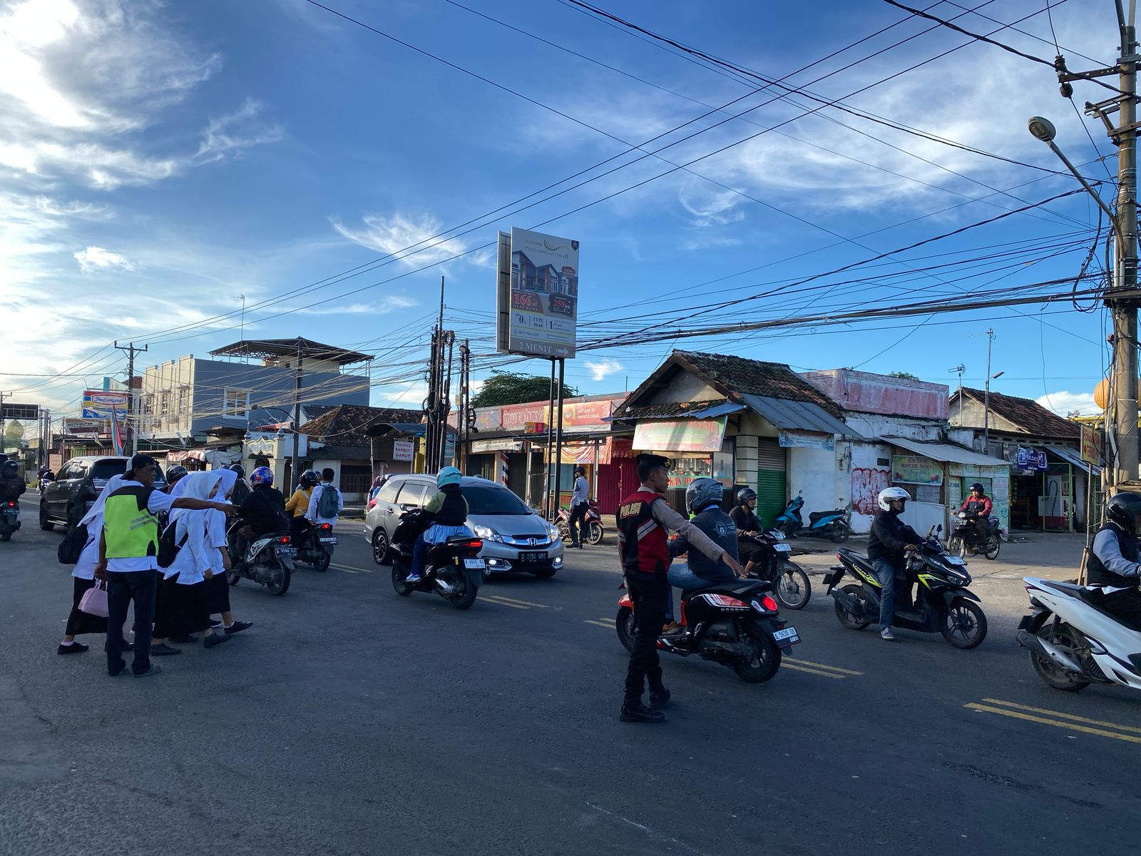 Kegiatan ini bertujuan untuk meminimalisir kemacetan dan memberikan pelayanan optimal kepada pengendara serta anak-anak sekolah yang sedang berangkat ke sekolah.