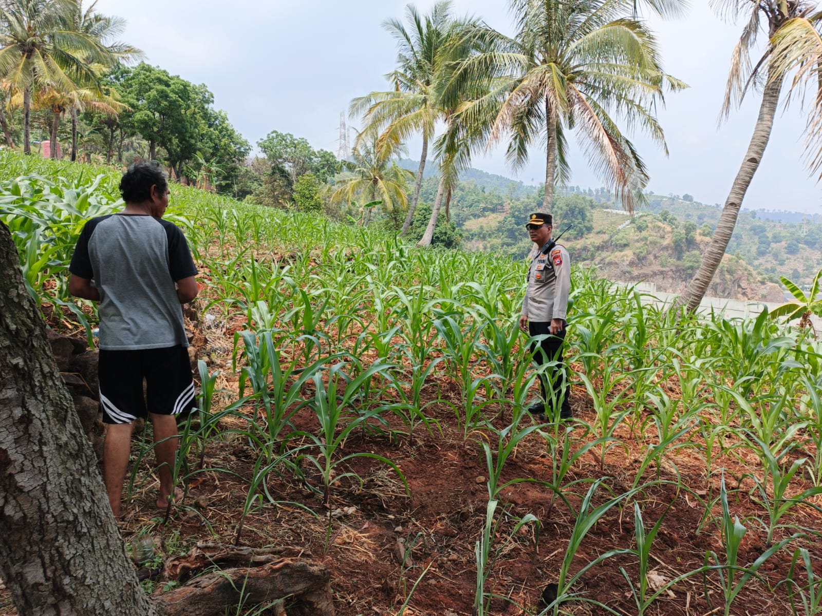 Oleh sebab itu Kapolsek Pulomerak dan bhabinkamtibmas polsek Pulomerak bersama masyarakat tani Kel. Lebakgede kec. Pulomerak saat ini lakukan pengecekan dan perawatan jagung, ujarnya