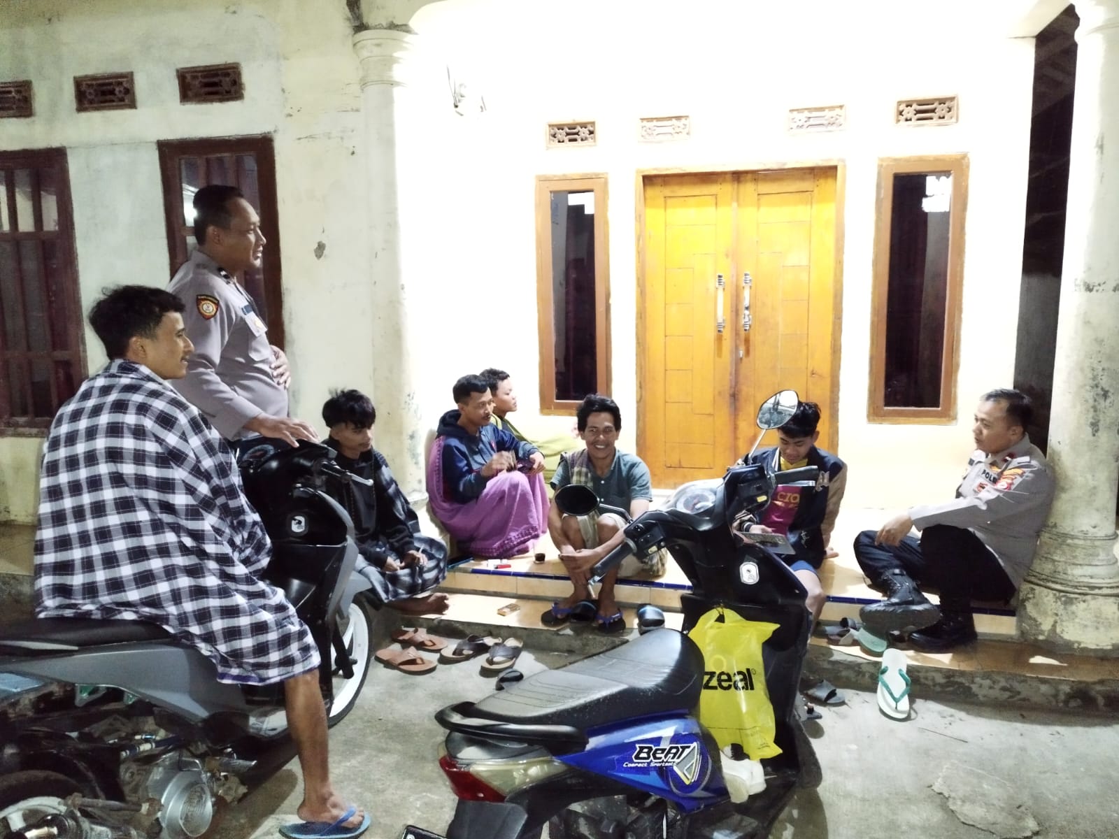 Aipda Isjuwanto dan Bripka Oki sambangi ke warga Sat kamling sampaikan pesan kamtibmas.