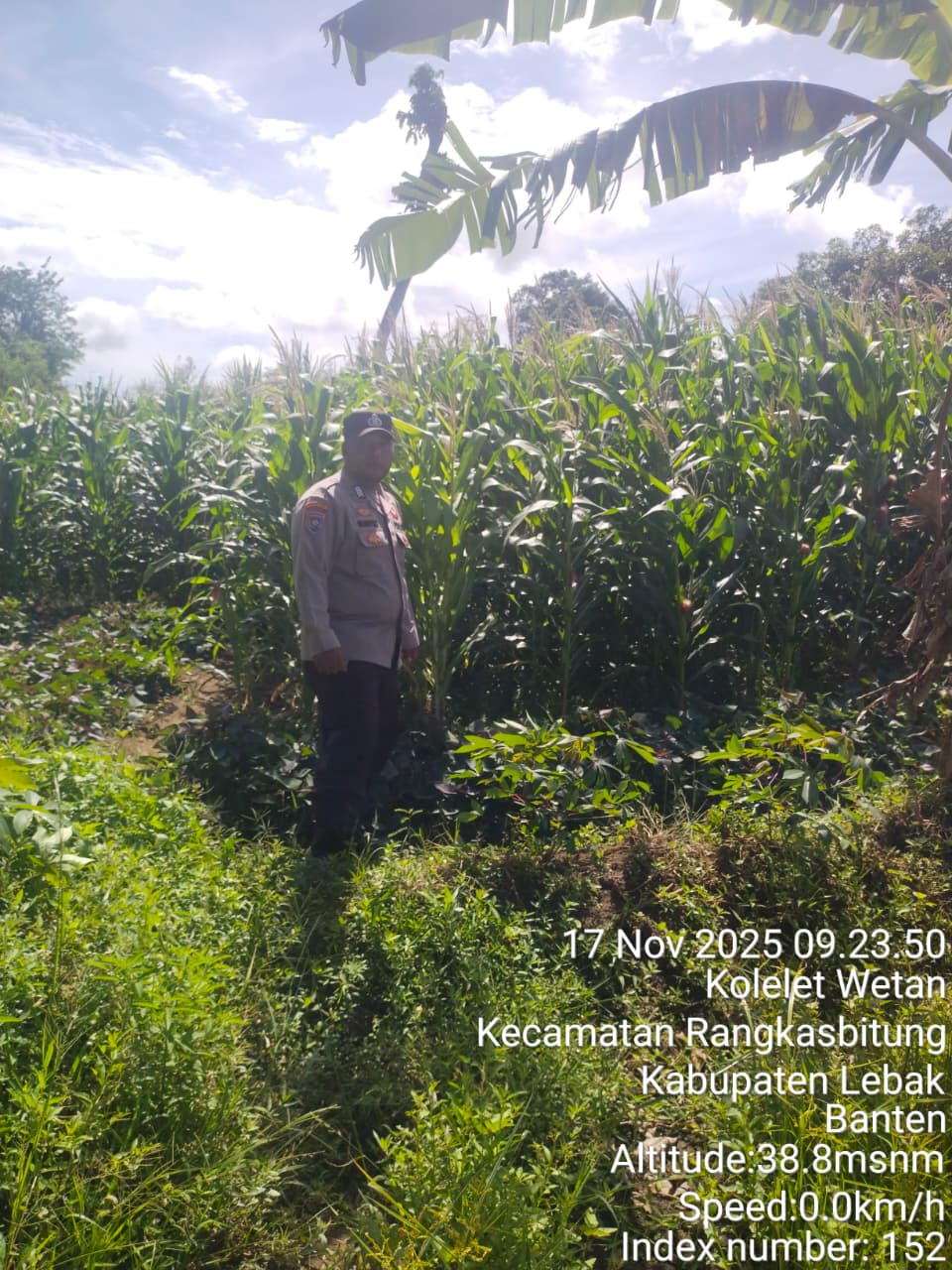 Kegiatan tersebut dilakukan untuk memantau pertumbuhan tanaman jagung yang sebelumnya telah ditanam bersama kelompok tani sebagai bagian dari dukungan Polri terhadap program pemerintah dalam mewujudkan ketahanan pangan nasional. Dalam kegiatan tersebut, Bhabinkamtibmas Polsek Rangkasbitung melakukan pengecekan kondisi tanaman, ketersediaan air, serta kelayakan lahan agar hasil panen dapat maksimal.Senin (17/11/2025)