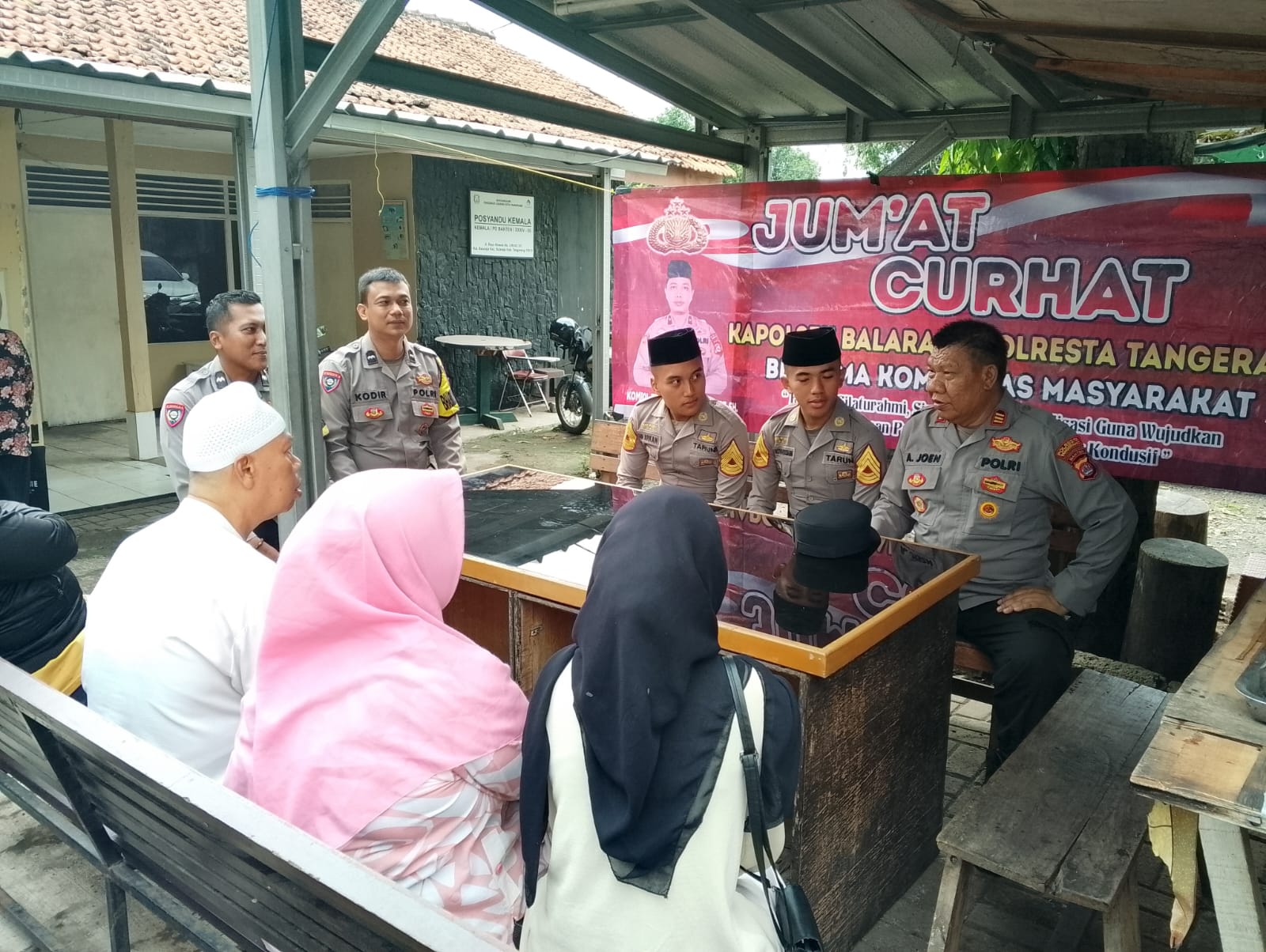 AKP A. Junaedi dari Polsek Balaraja Ipda Setiyono memulai sesi curhat dengan mengajak masyarakat untuk berbagi cerita atau keluh kesah yang mereka alami. Masyarakat diminta untuk berani membuka diri dan mengungkapkan segala permasalahan yang ingin mereka sampaikan.