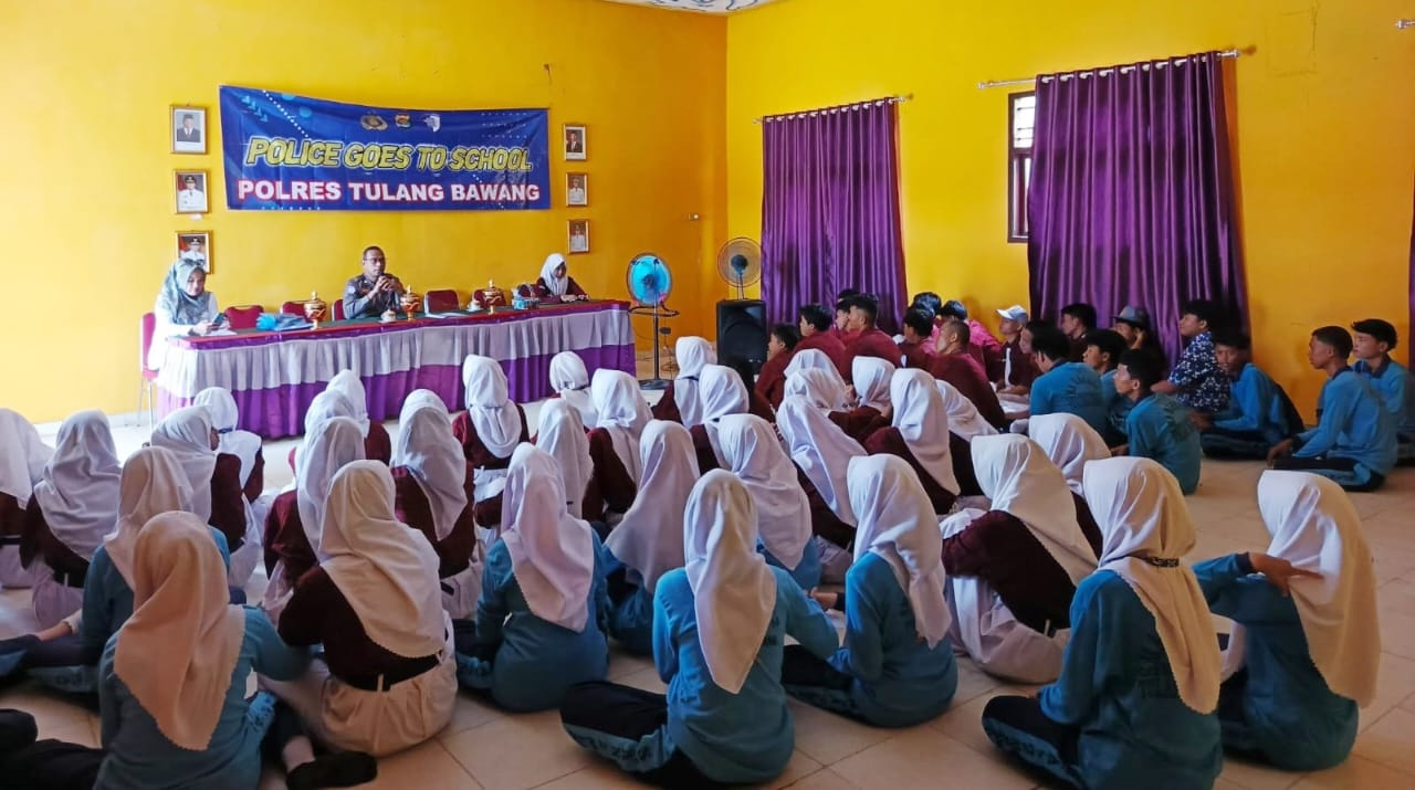Jppos.id || Tulang Bawang — Satuan Lalu Lintas (Sat Lantas) Polres Tulang Bawang, Polda Lampung, menggelar kegiatan police goes to school di salah satu Sekolah Menengah Atas (SMA) yang ada di wilayah hukumnya guna memberikan imbauan dan edukasi kepada para pelajar.