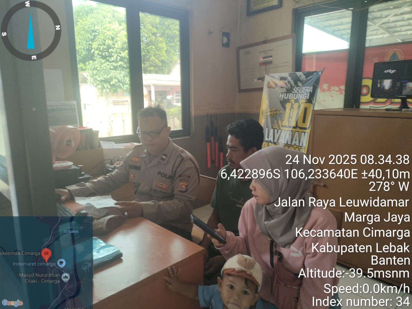 JPPOS.ID || LEBAK Wujud nyata kepedulian Polri terhadap masyarakat kembali terlihat di Polsek Cimarga, Polres Lebak. Kali ini, Aipda A. Arfiadri, S.Pd, selaku Kepala Sentra Pelayanan Kepolisian Terpadu (SPKT) Polsek Cimarga Polres, menunjukkan sikap sigap dan humanis dengan membantu seorang warga yang kehilangan dompet berisi dokumen penting, di antaranya KTP, Kartu ATM, serta STNK. Senin (24/11/2025)