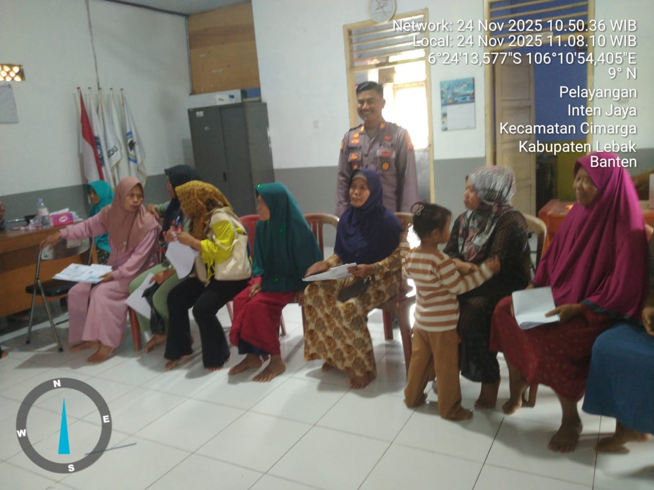 Kapolsek Cimarga Polres Lebak AKP. Pipih Iwan Hermansyah menghampiri Ibu-ibu kumpul bersama dengan warga Sekaligus menyampaikan pesan Kamtibmas, Senin (24/11/2025)