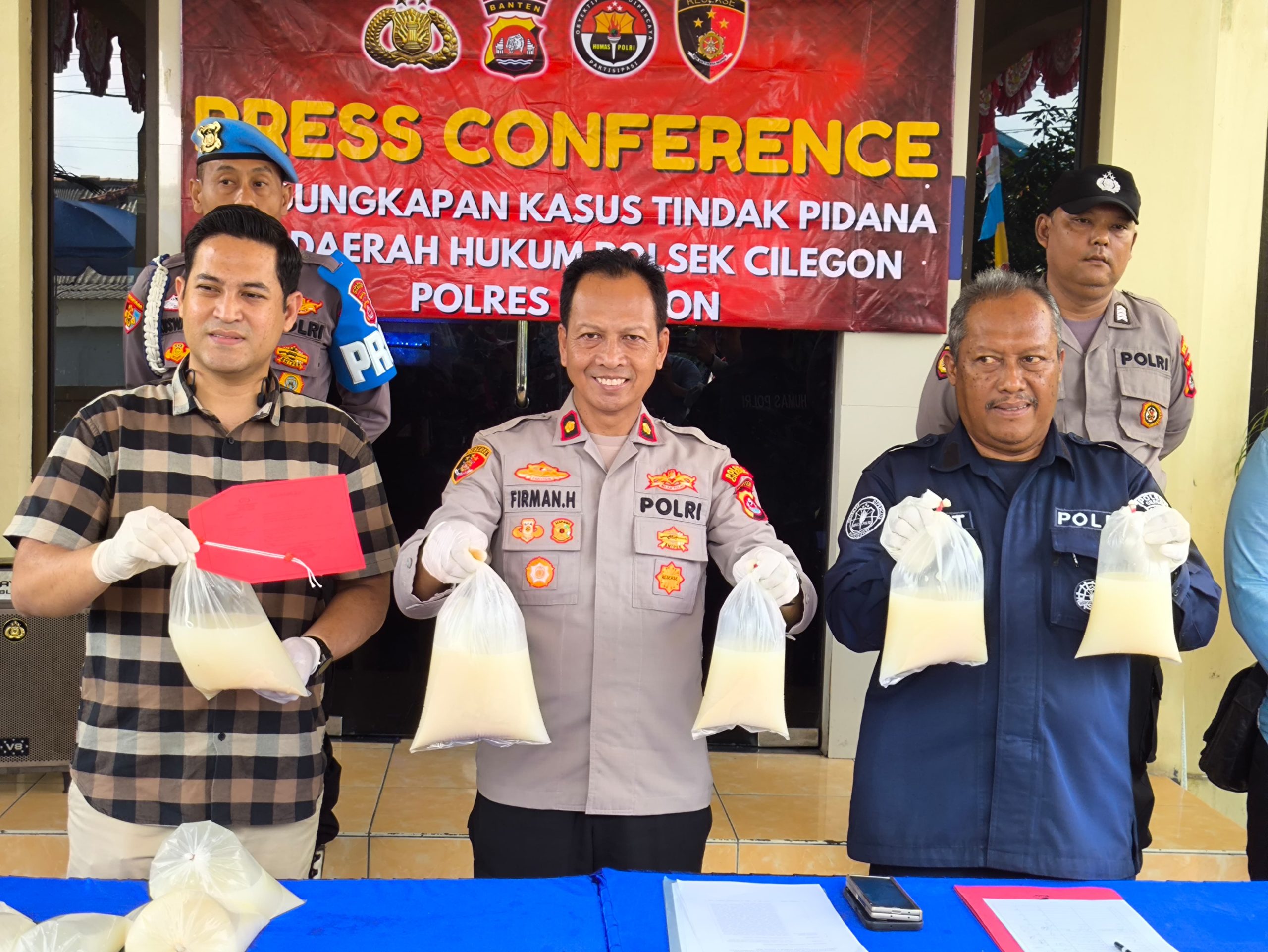 Dalam press confrence pengungkapan kasus penjualan minuman keras jenis tuak kapolsek Cilegon Polres Cilegon Polda Banten KOMPOL Firman hamid menjelaskan berawal dari informasi masyarakat adanya peredaran minuman keras jenis tuak kemudian Pada hari Sabtu tanggal 02 Agustus 2025 sekira jam 22.00 Wib tepatnya di Lingkungan Priuk Rt/Rw 005/003 Kelurahan Sukmajaya Kecamatan Jombang Kota Cilegon telah diamankan seorang laki-laki bernama saudara NS (56) telah menjual minuman keras jenis tuak berikut barang buktinya sebagaimana dimaksud dalam Perda Kota Cilegon No. 05 tahun 2001 tentang larangan menjual minuman keras. Saudara NS (56) menjual minuman keras jenis tuak tersebut kepada orang/pembeli yg datang ke rumah miliknya dan menjual tuak tersebut secara perliter/per plastik dengan harga Rp 10.000,- (Sepuluh ribu rupiah) pelaku mendapatkan tuak tersebut dari Saudara M yang berada di Mancak, Kabupaten Serang dengan cara diantar kerumah milik pelaku dengan harga perliternya Rp 7.000,- (Tujuh ribu rupiah). Dalam setiap 2 hari sekali Saudara NS bisa menjual habis tuak tersebut dan akan dikirim kembali oleh Saudara M setiap 2 hari sekali. Kemudian