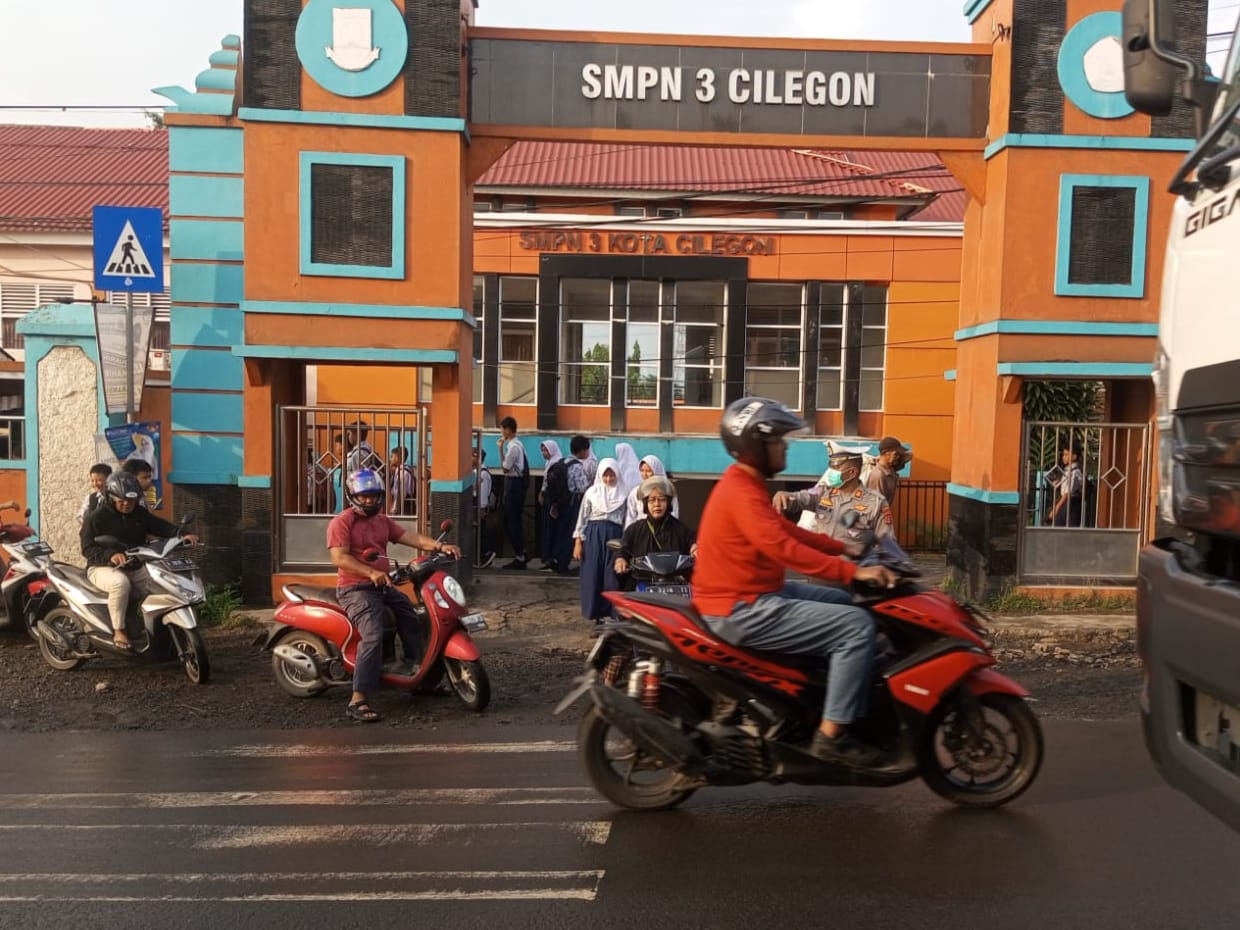 Kanit Lantas Polsek Pulomerak Bantu atur lalin di depan SMP 3 Cilegon