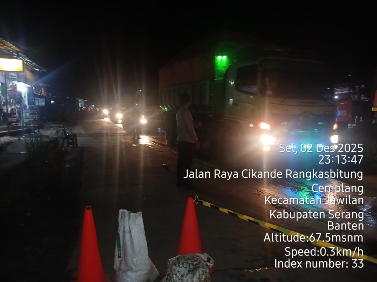 Melaksanakan patroli Mobile dan gatur lalin di perlintasan kereta api,Desa Mekarsari,Kecamatan Rangkssbitung,Kabupaten Lebak.Selasa malam 02 Desember 2025,pukul 23.13 Wib.