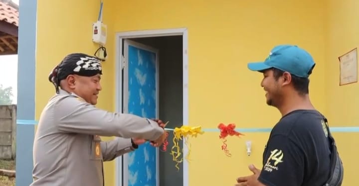 Penyerahan sumur bor lengkap dengan sarana dan prasarananya serta kamar mandi ini dibarengi dengan pengguntingan pita.