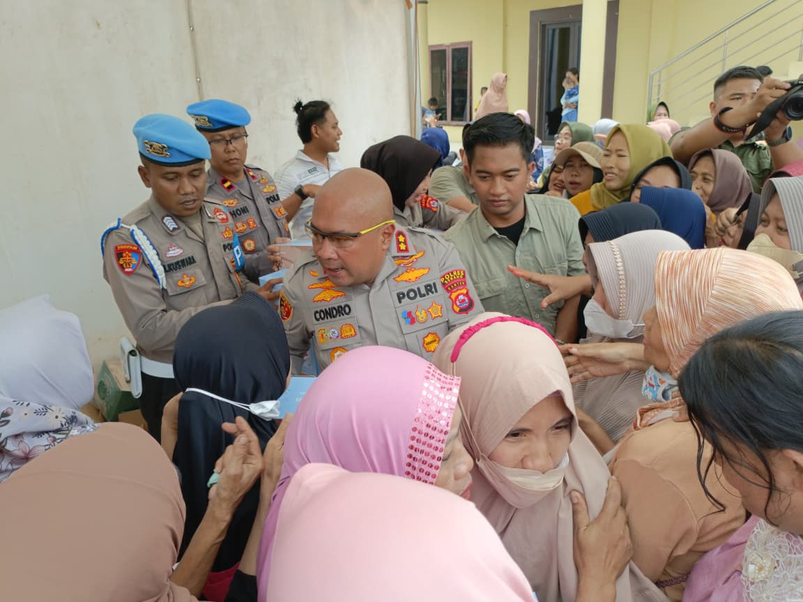 “Pemberian door prize serta beras, minyak goreng dan terigu, dikhususkan bagi ibu hamil, emak-emak lanjut usia untuk membantu meringankan kebutuhan keluarga,” kata Kapolres Condro Sasongko.
