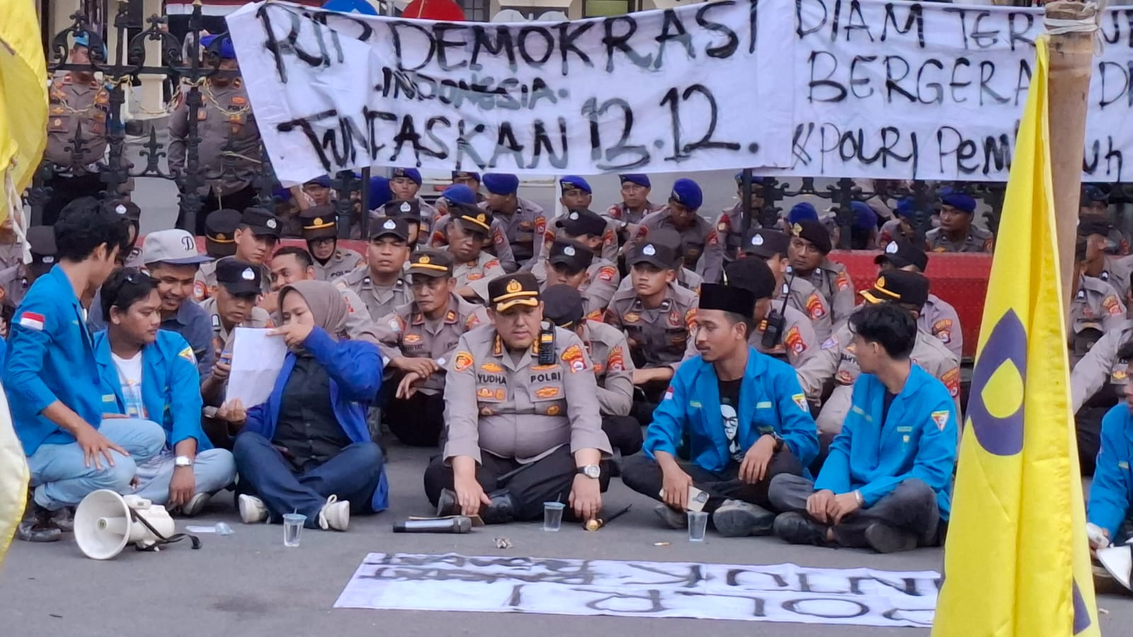 JPPOS.ID || POLRESTA SERKOT_ Kapolresta Serang Kota Kombes Pol. Yudha Satria, S.H., S.I.K., M.H., bersama Pejabat Utama dan Personel Polresta Serang Kota menerima aksi unjuk rasa dari Aliansi Mahasiswa Pergerakan Mahasiswa Islam Indonesia (PMII) Kota Serang yang digelar di depan Mako Polresta Serang Kota, pada Sabtu 30/8/2025.