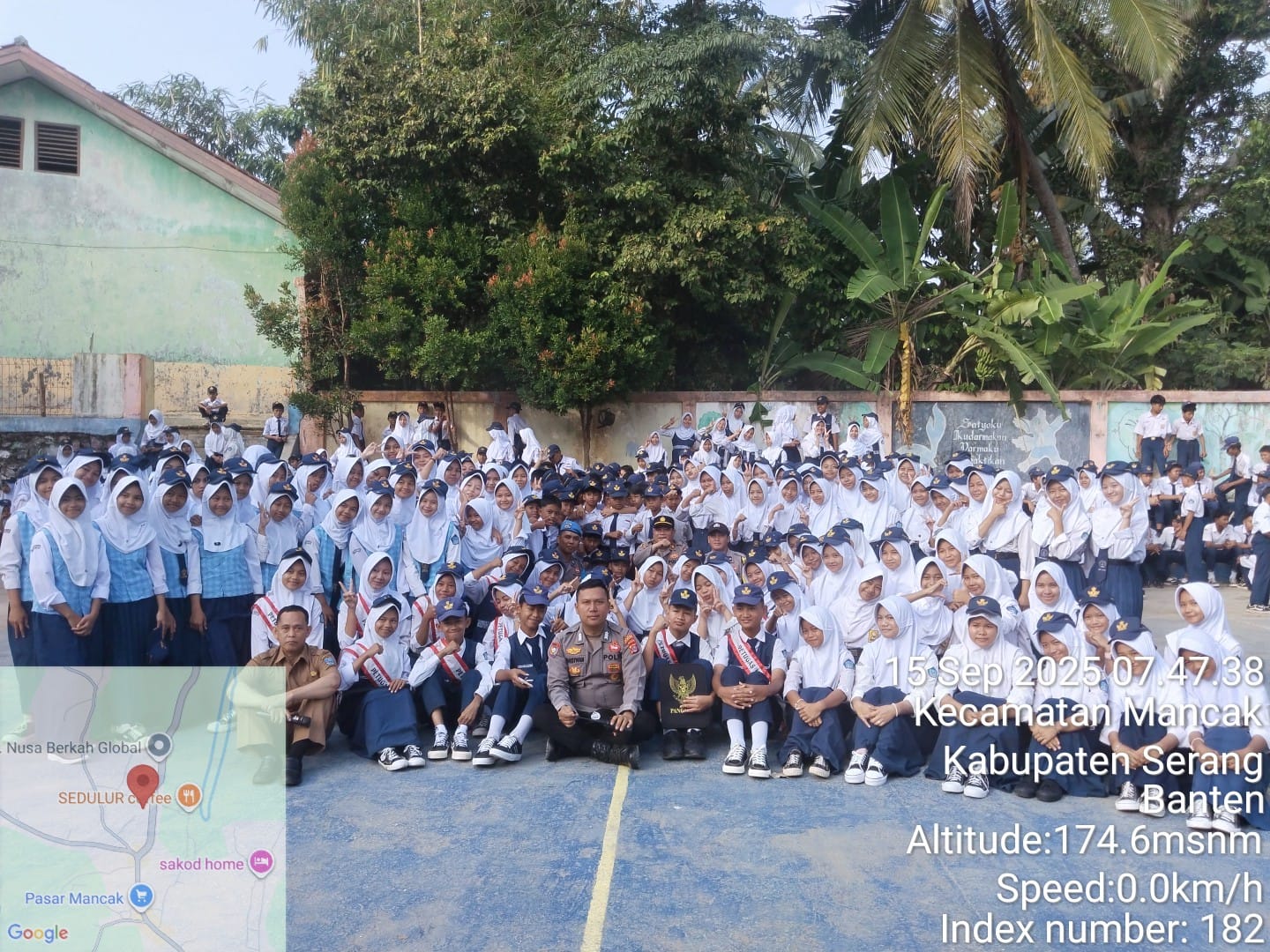 JPPOS.ID || Mancak – Personil Polsek Mancak Polres Cilegon Polda Banten melaksanakan Himbauan dengan Siswa – Siswi Sekolah dalam rangka pencegahan kenakalan remaja di Lingkungan dan mendukung Program Quick Wins Presisi Polri Kec Mancak Kab. Serang. Senin (15/09/2025).