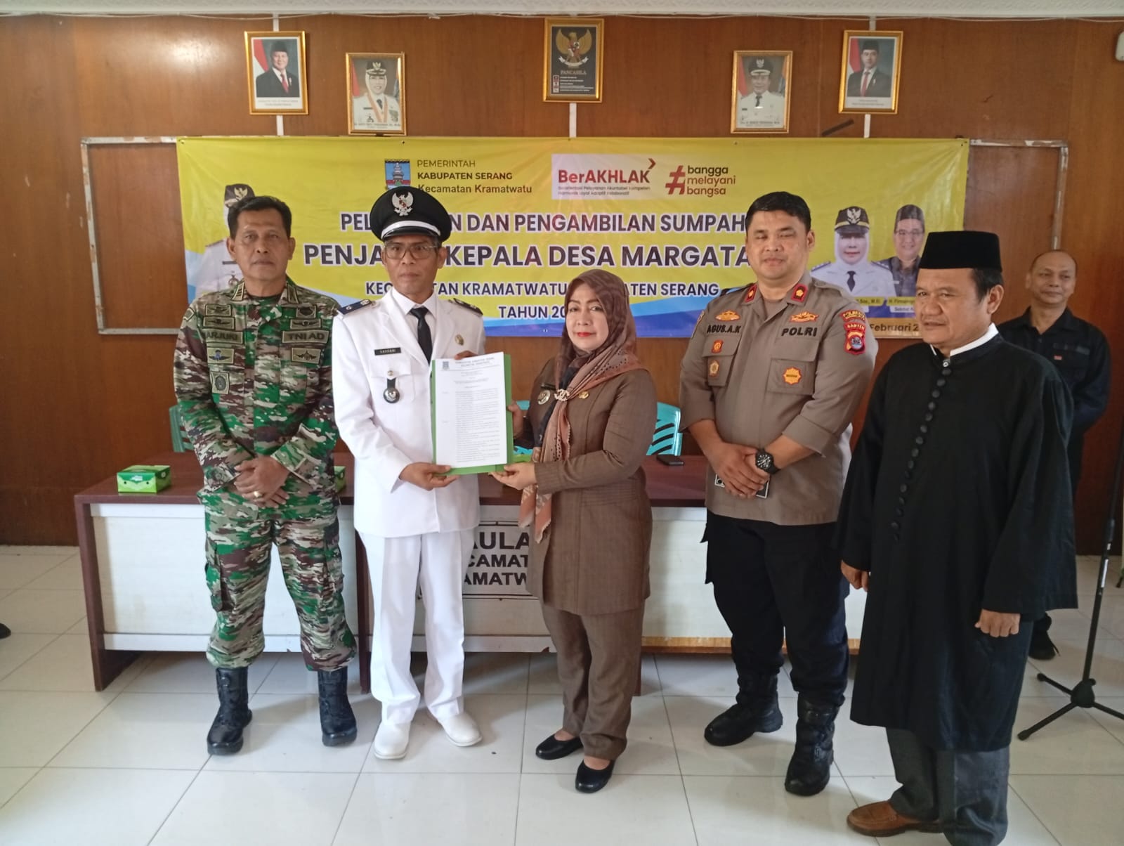 Camat Kramatwatu juga menyampaikan ucapan selamat kepada PJ. Kades Margatani yang baru dilantik dan harapan dari Camat Kramatwatu agar PJ. Kades segera membangun sinergitas dengan Perangkat desa dan masyarakat di Desa Margatani dalam melaksanakan tugas sebagai Penjabat kepala desa Margatani.