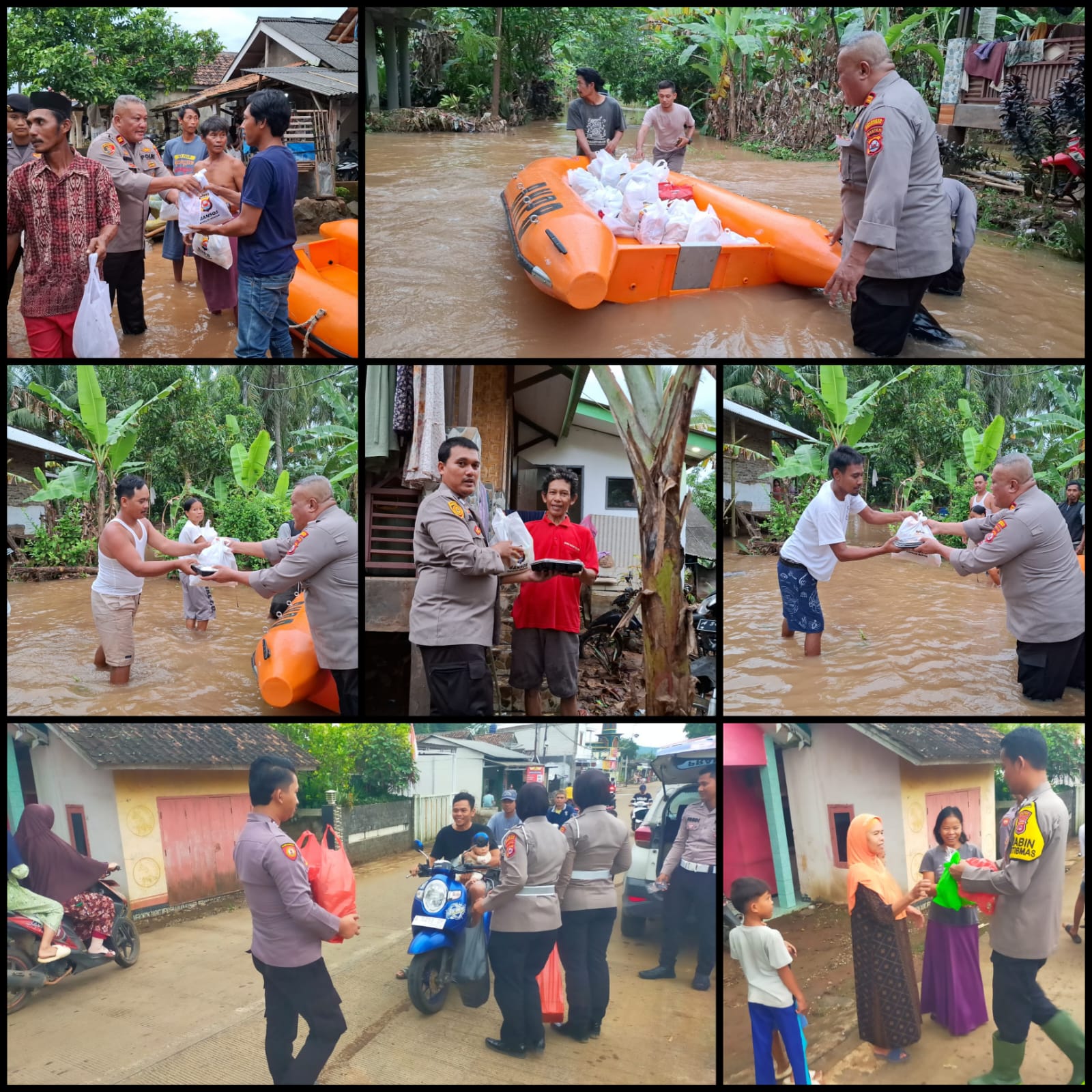 Kapolsek Padarincang bersama Personel Polresta Serkot berbagi Takjil dan berikan bantuan untuk warga korban banjir