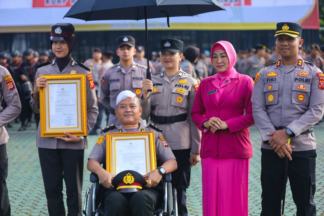 Dalam upacara Kenaikan Pangkat Luar Biasa di Mapolda Jabar, Senin (8/9/2025), Sandy naik pangkat dari ajun inspektur polisi satu (Aiptu) menjadi inspektur polisi dua atau Ipda.