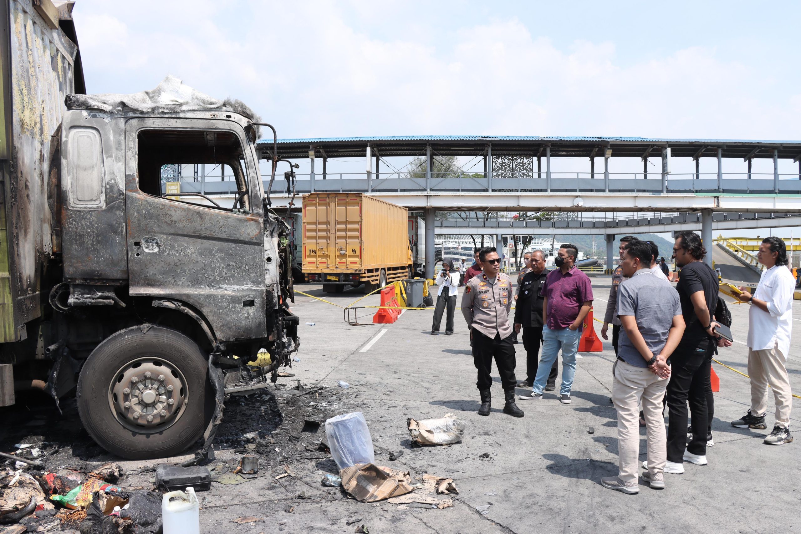 JPPOS.ID || Pada hari ini Jum’at tanggal 26 September 2025 sekira jam 00.30 Wib anggota piket Polsek Kp Merak mendapatkan laporan dari Security Pelabuhan Merak bahwa telah terjadi kebakaran kendaraan Tronton warna hijau Nopol B 9289 NEU dengan muatan paket EXPEDISI PT. JNE di Dermaga 1 Pelabuhan Merak.