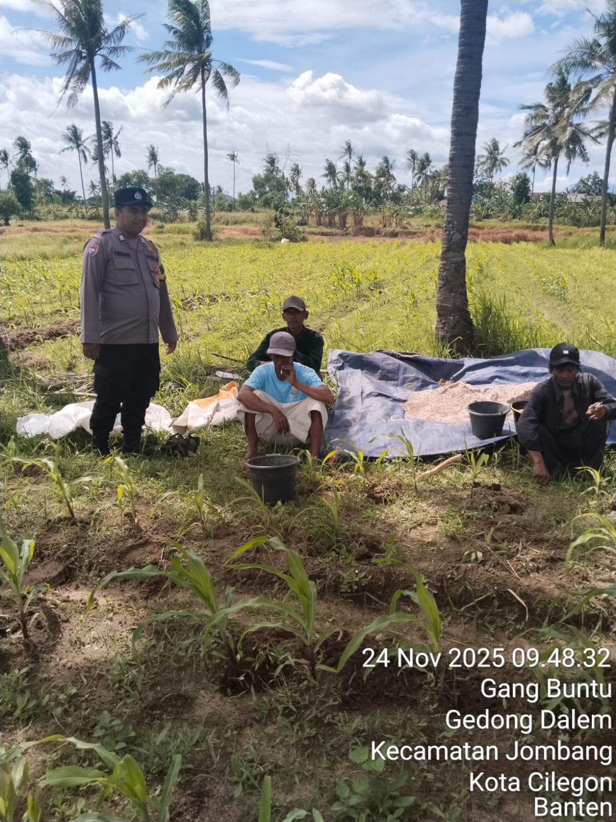 JPPOS.ID || Melaksanakan program pemerintah, penanaman jagung dalam program ketahanan pangan, personil Polsek Kp Merak Polres Cilegon Polda Banten melaksanakan kegiatan peninjauan serta monitoring lokasi yang nantinya akan ditanami bibit jagung unggul di Desa Mangkunegara Kecamatan Bojonegara, Kabupaten Serang, Senin (24/11/2025).
