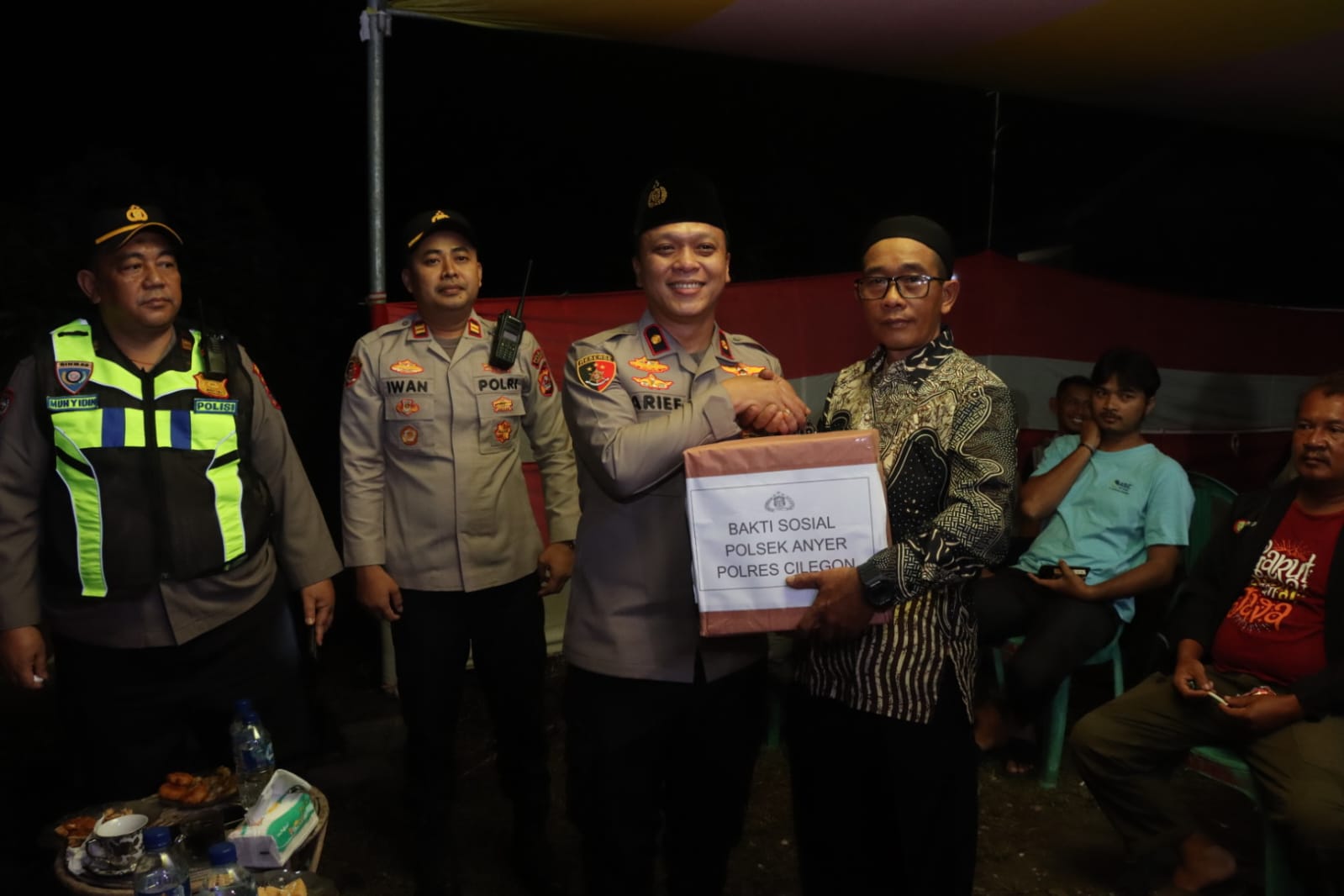 Sebagai bentuk dukungan, waka Polres Cilegon menyerahkan bantuan kepada petugas pos siskamling
