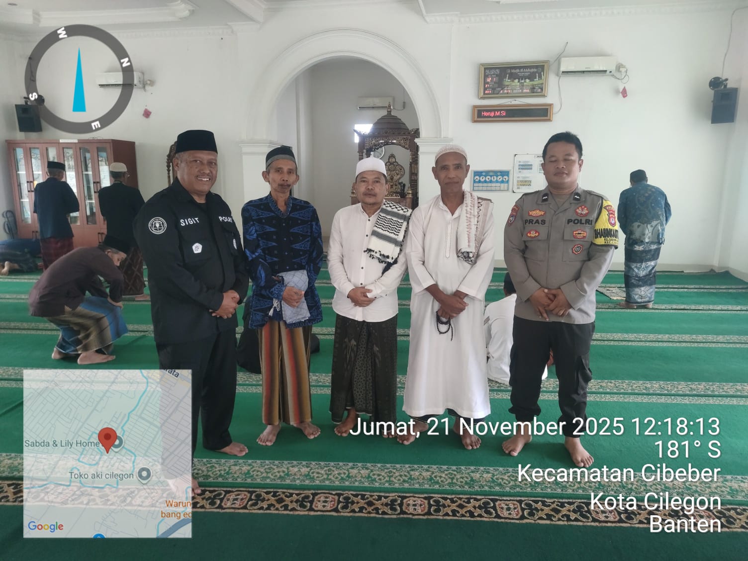 Seperti Tadi Saya Melaksanakan Kegiatan Jumat keliling di Masjid Al-Muhajirin Perum Praja Mandiri, Kelurahan Cibeber Kecamatan Cibeber Kota Cilegon setelah pelaksanaan kegiatan sholat kami laksanakan bincang bincang dengan masyarakat guna menciptakan situasi Kamtibmas dan Antisipasi Bencana Alam diwilayah kecamatan Cibeber Kota Cilegon. Ujar Akp Sigit Dermawan.